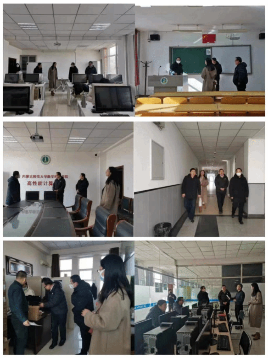 为保证新学期教学工作顺利开展,2月19日上午,学院党委书记李联和,院长扎其劳,党委副书记季建光,副院长包霞,信息与计算科学实验室主任武平,高性能计算中心主任萨和雅及学院部分辅导员,对学院所有实验室、应用数学中心、办公室、教室等教学、科研场所开展了安全大检查,并对行知楼、科技楼的教学环境、教室准备和教学设施运行情况进行了全面检查。进一步强化主体责任,加强风险防控,排查安全隐患,确保师生人身安全和校园稳定。积极做好教学管理与服务工作,营造良好的育人环境。