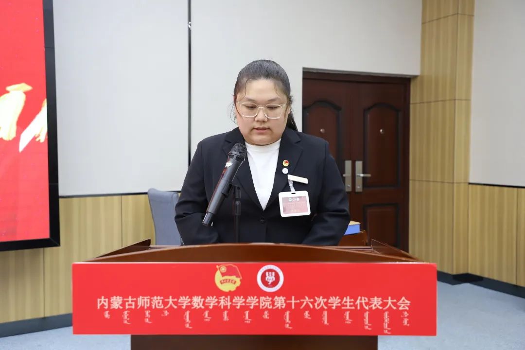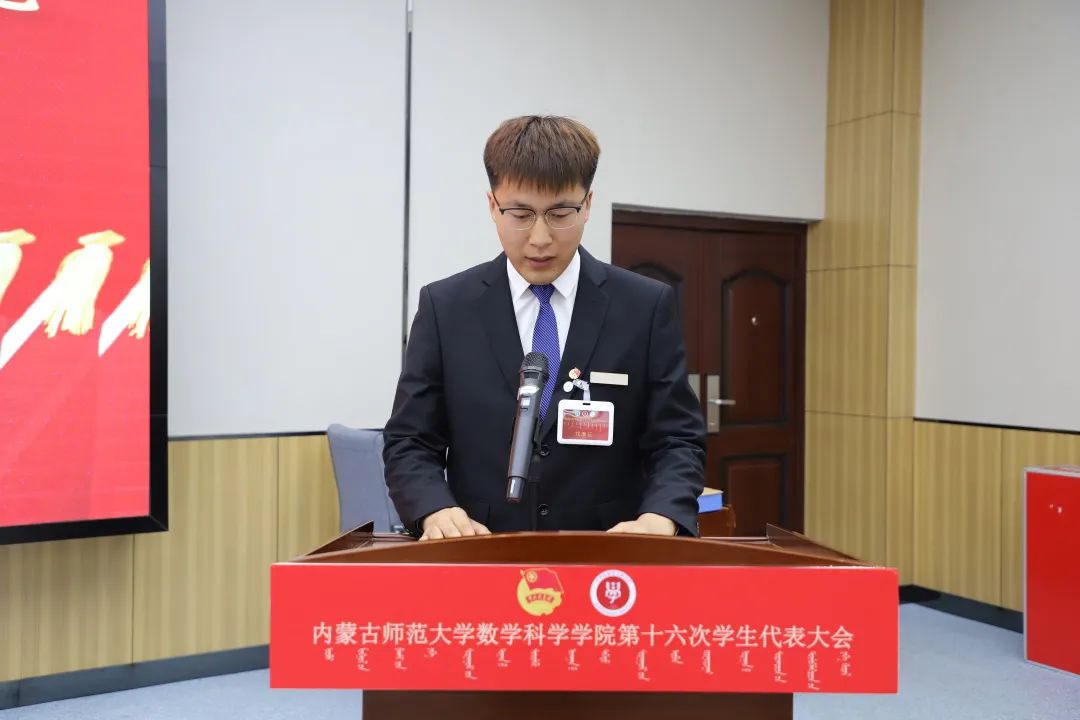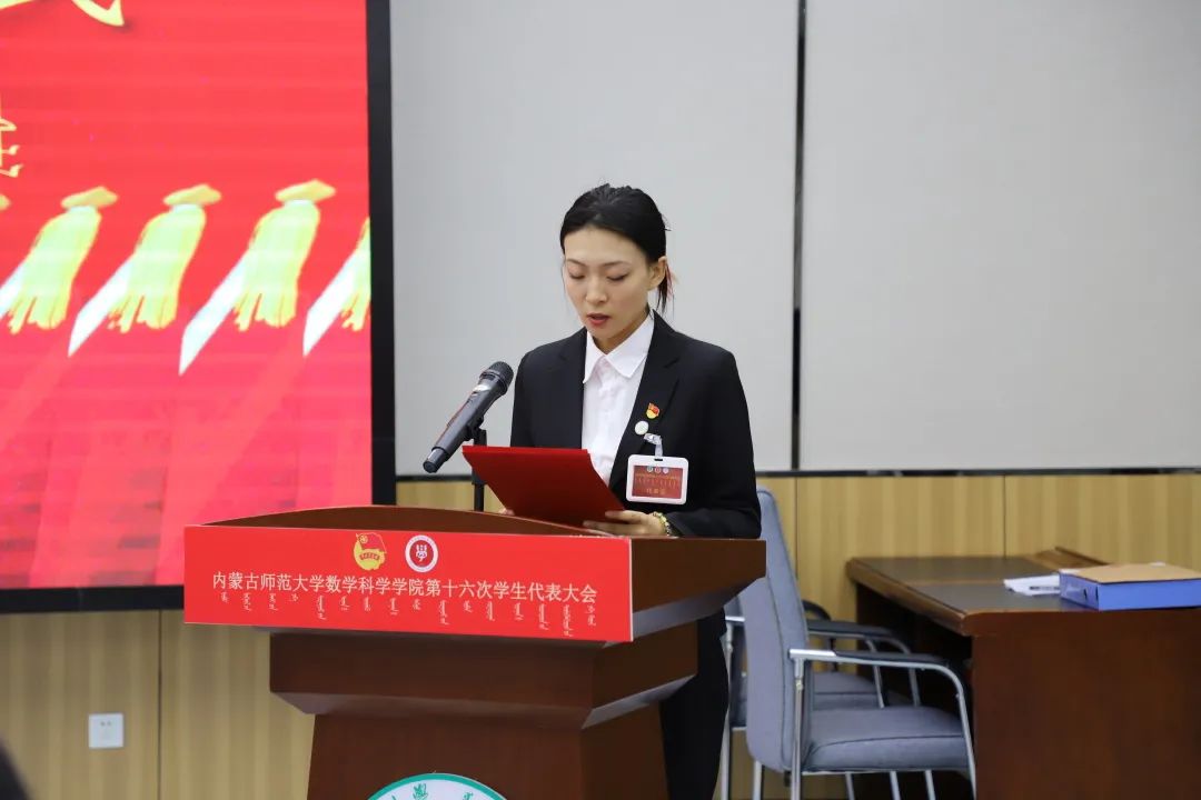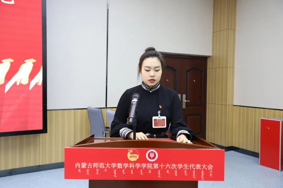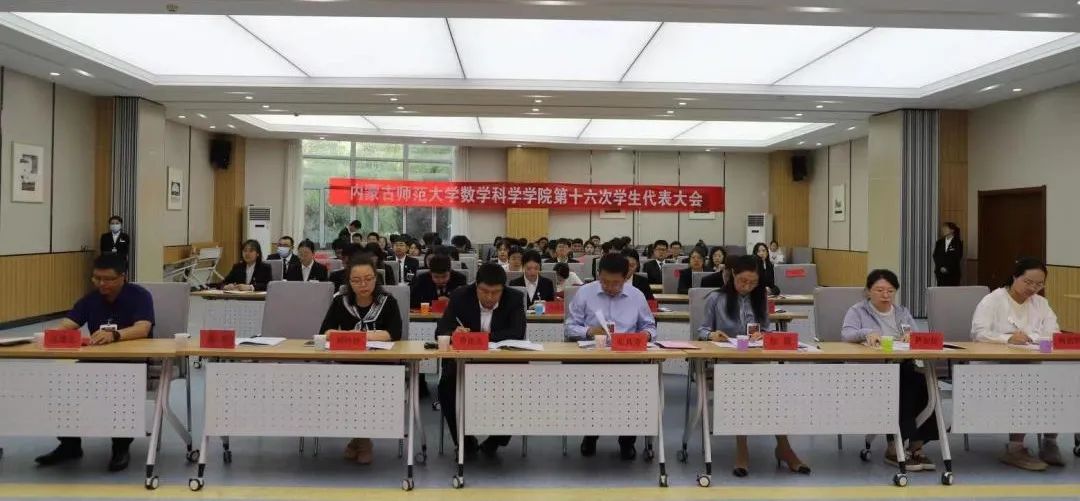 2023年6月9日晚七点,澳门pg官方电子平台在盛乐校区学生事务中心召开澳门pg官方电子平台第十六次学生代表大会,学院院长扎其劳教授,学院党委副书记、副院长季建光老师,学院副院长包霞老师,学生工作与就业办公室副主任刘沙沙老师,学生工作辅导员萨如拉老师,学生工作辅导员阿茹罕老师,以及校学生会文体部负责人高静同学,全体学生代表参加会议。会议由学院团总支书记皮建东老师主持。