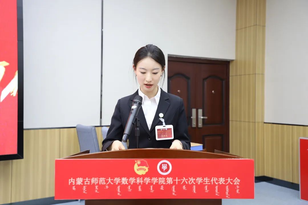 大会第六项,郑瑞琪同学宣读《澳门pg官方电子平台第十六次学生代表大会代表资格审查委员会关于代表资格的审查报告》