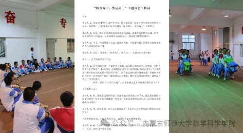 围绕“粽香端午,梦启高三”主题,设计并主持了一次班会。在这个特别的班会上,同学们们通过游戏、比赛、许愿,收获了快乐、温暖和力量。高三的征程即将开启,让大家带着这份端午的祝福,带着对未来的憧憬,勇敢地迎接挑战,向着目标院校奋勇前进。