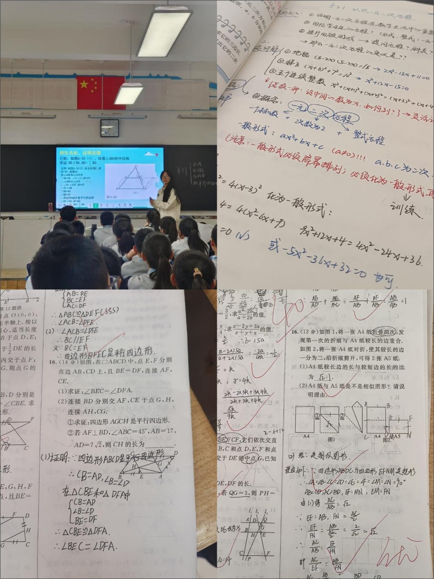 作为“小青教”,听课学习成了每天的必修课。第一次听苏老师讲数学课,她的课堂模式就深深吸引了我:课前提问靶向定位上节课知识点,迅速将学生拉进课堂;恰到好处的语调和停顿,吸引了学生的注意力;课堂练习分层设置,给学生小组讨论的机会,学习氛围浓厚……教研会上,老教师们讨论“如何让学生爱上函数”,连争论都带着对教学的认真。记得有次听外聘老师的角平分线模型示范课,她让学生上台当“小老师”,课堂气氛活跃得像炸开的爆米花。这些日子,我像块海绵,拼命吸收着前辈们的经验,听课笔记上渐渐写满了红笔批注。