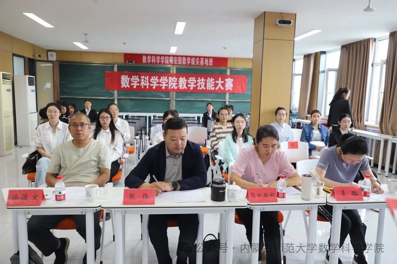 出席本次比赛的评委老师有:张伟老师,乌日柴胡老师,徐俊文老师,李璐老师,范鹏程老师,李春兰老师,陈阿茹娜老师和楚鑫老师。评委老师们从教学目标设定、教学逻辑梳理、数学思维引导、课堂互动效果等维度对选手表现进行综合评定。