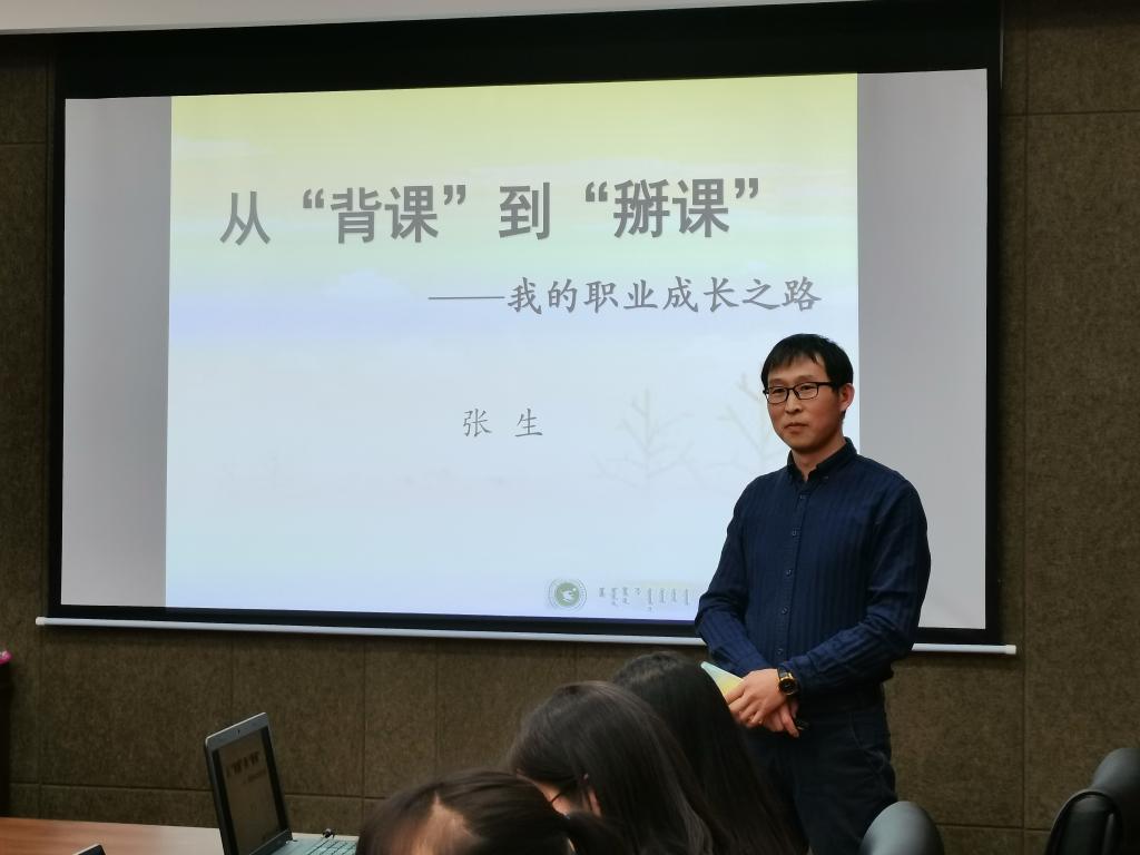 师大附中张生老师,以《从“背课”到“掰课”》为主题阐述了自身的教师职业成长之路。他认为讲课应该充满激情,宽严有度,理性严谨,幽默轻松。鼓励研究生:“假如我们没有足够秉异的天赋、没有足够开阔的未来,那就一定要有和自己死磕的决心,一定要有辛苦前置的意识。”