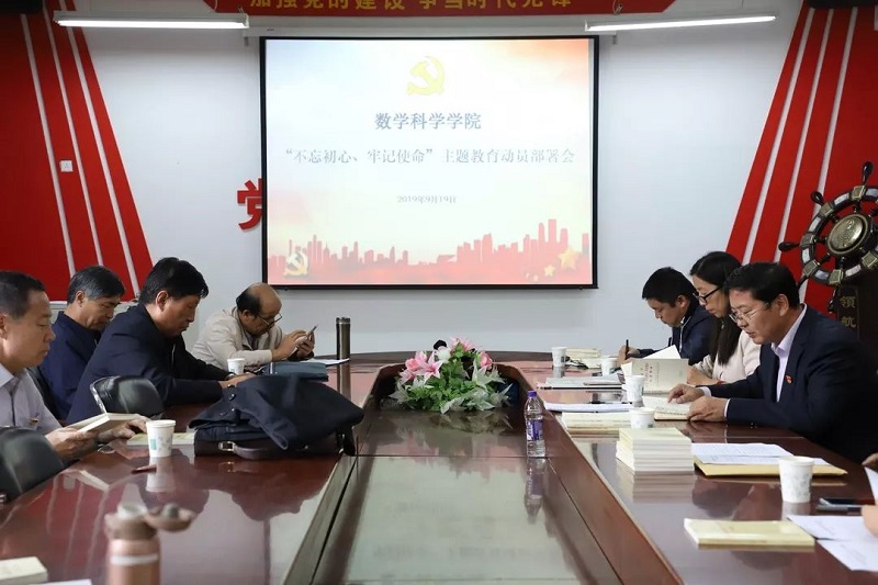 2019年9月19日,澳门pg官方电子平台党总支于学院楼会议室召开了“不忘初心,牢记使命”主题教育动员部署会。校第五指导组包铁龙、王慧春老师、学院领导班子成员、各党支部书记、全体教工党员以及部分学生党员和教工代表出席本次会议。此次会议由澳门pg官方电子平台党总支副书记季建光主持,首先全体党员一起面对党旗庄严的重温了入党誓词,之后由扎其劳书记作了主题教育的动员和部署,最后由指导组包铁龙老师作了重要指导讲话。动员部署和指导讲话中传达了学校主题教育动员部署会的会议精神,强调了主题教育的重要意义,传达了习总书记视察内蒙古期间对主题教育进行实地指导的有关精神。
