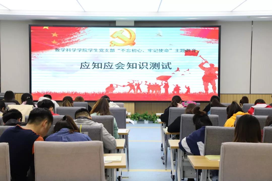 2019年10月19日,澳门pg官方电子平台学生党支部于学生事务中心进行“不忘初心,牢记使命”主题教育应知应会知识测试。澳门pg官方电子平台数学与应用数学学生党支部,信息与计算科学学生党支部及研究生党支部参加本次知识测试。数学与应用数学党支部书记皮建东、信息与计算科学学生党支部书记李帅组织学院学生党员、预备党员进行测试。