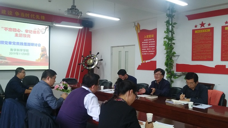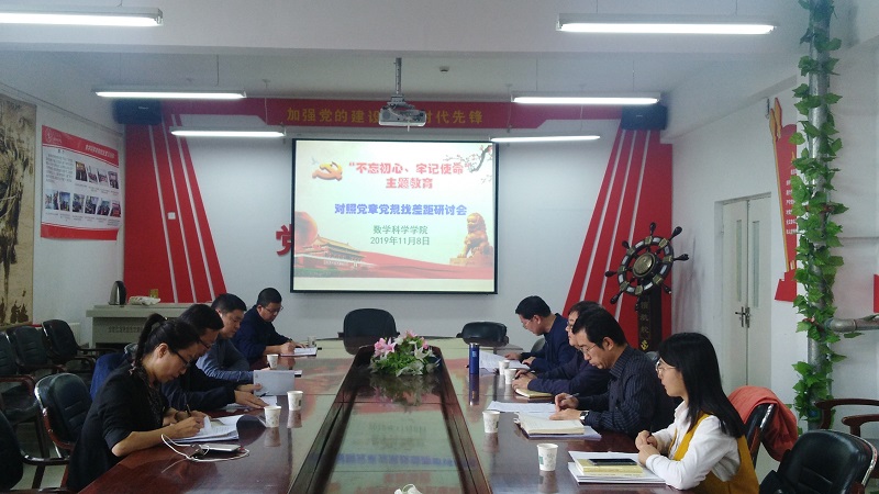 11月8日,澳门pg官方电子平台开展了“不忘初心、牢记使命”主题教育领导班子成员对照党章党规找差距专题研讨会,学校主题教育第五指导组克金布、王慧春老师参加并指导工作。会上,班子成员紧紧围绕“十二字”主题教育总要求,结合《党章》、《关于新形势下党内政治生活的若干准则》和《中国共产党纪律处分条例》列出的“18个是否”分别作了对照党章党规找差距的深刻发言,同时还开展了批评与自我批评,做到思想认识全面,检视问题到位、整改落实有效。