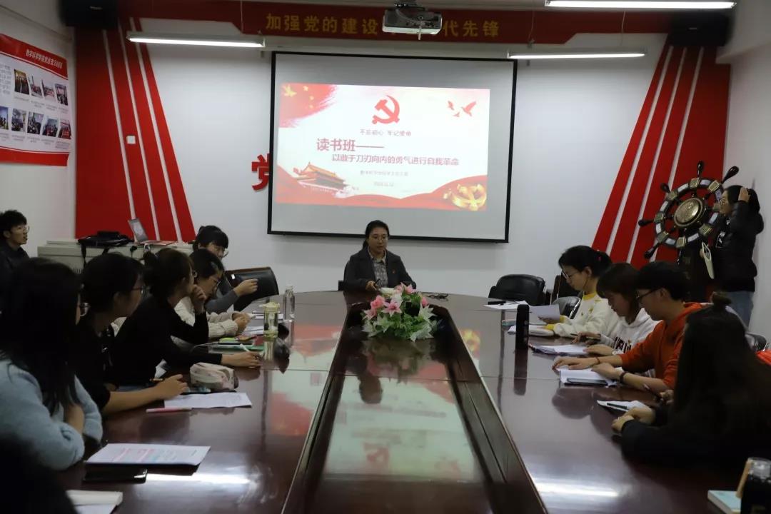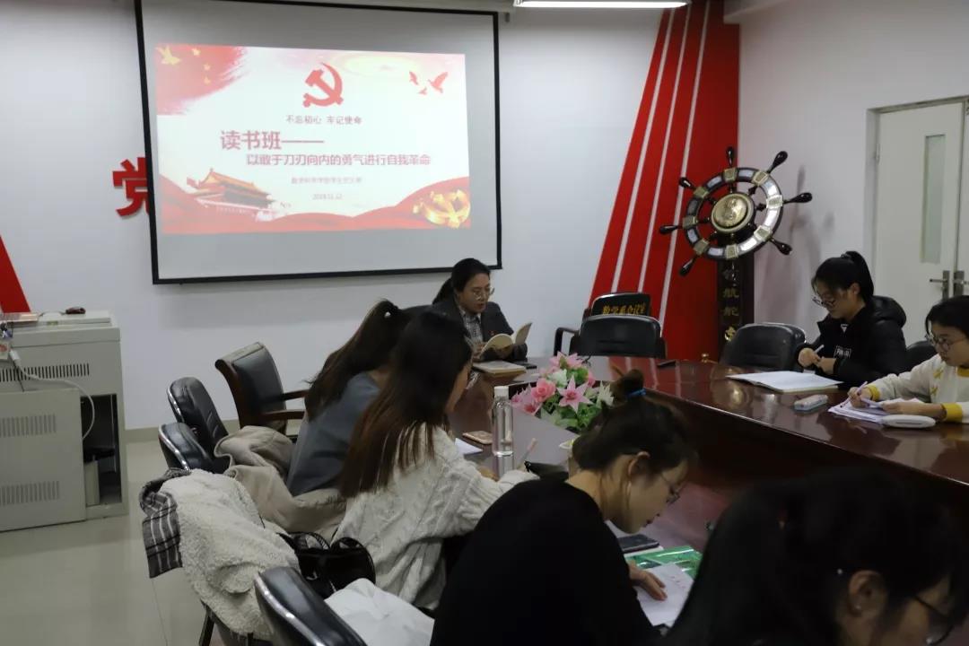2019年11月12日,澳门pg官方电子平台学生党支部于学院楼会议室举办“不忘初心、牢记使命”主题教育读书班活动。澳门pg官方电子平台信息与计算科学学生党支部书记李帅带领各位学生党员、预备党员学习《习近平新时代中国特色社会主义思想学习纲要》一书。大家联系自己的学习体会、工作经历和成长历程,就如何理解、把握和践行初心使命、推进党的伟大自我革命,与读书班学生党员、预备党员们深入交心交流,进一步加深对习近平新时代中国特色社会主义思想的理解。