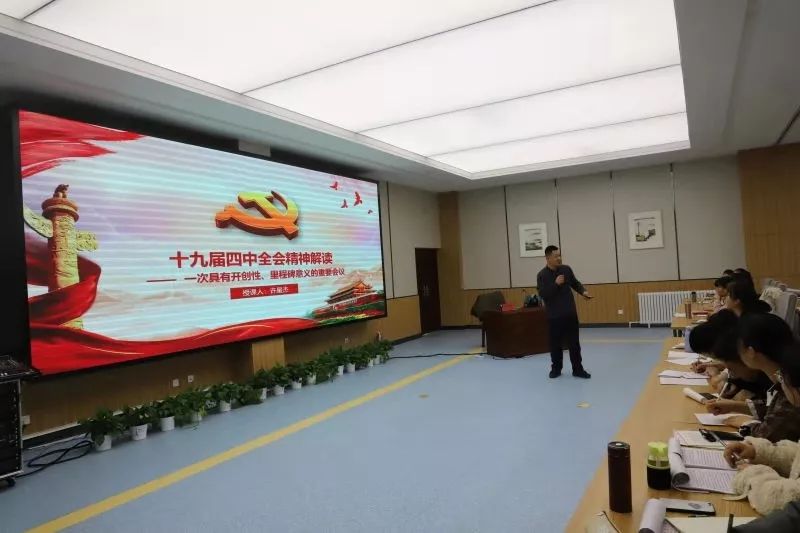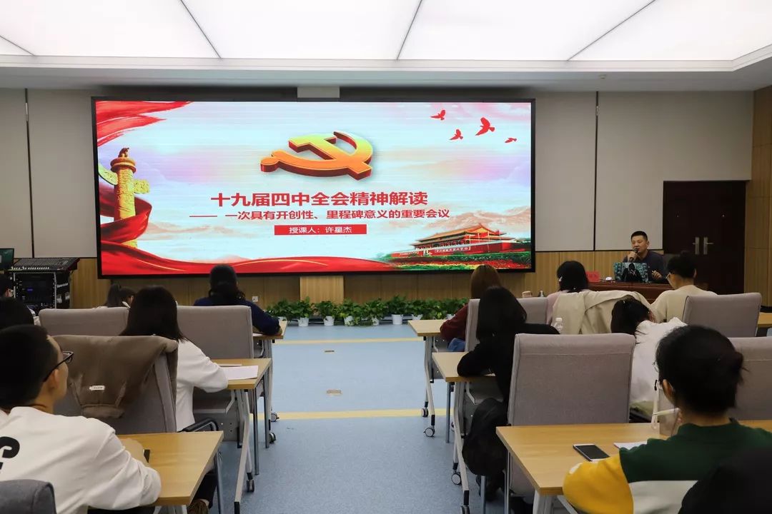 许星杰老师向同学们详细解读了十九届四中全会的精神内容,强调这是一次具有开创性、里程碑意义的重要会议。