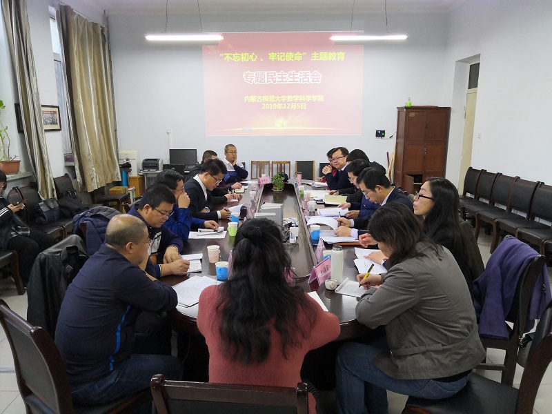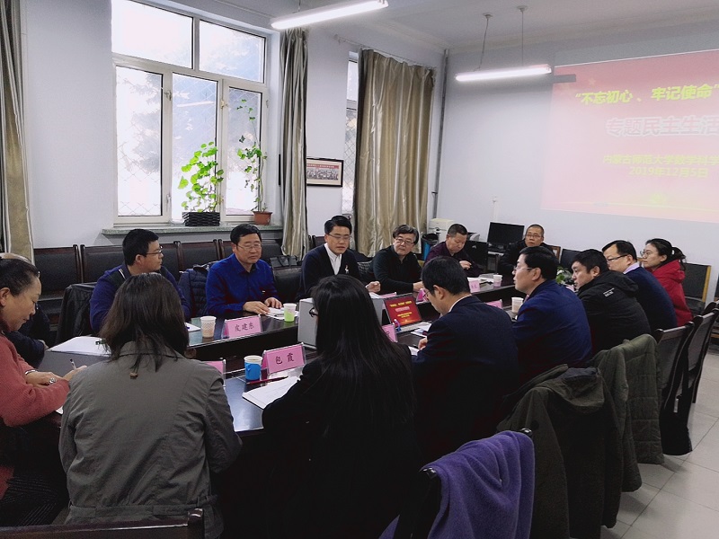 12月5日下午,澳门pg官网在校本部会议室召开了领导班子“不忘初心、牢记使命”专题民主生活会,自治区主题教育第九巡回指导组武家田同志和学校主题教育第五指导组克金布、包铁龙、周绍渊三名同志全程参加并指导了本次会议。会议由学院党总支书记扎其劳同志主持,列席会议的还有学院所有环节干部和各党支部书记。