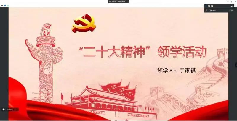 澳门pg官方电子平台学生第一党支部开展了党的二十大精神领学活动,由于家祺同学领学,在领学内容中强调,同学们要深入学习贯彻习近平新时代中国特色社会主义思想,在新时代伟大实践中不断开辟马克思主义中国化时代化新境界。