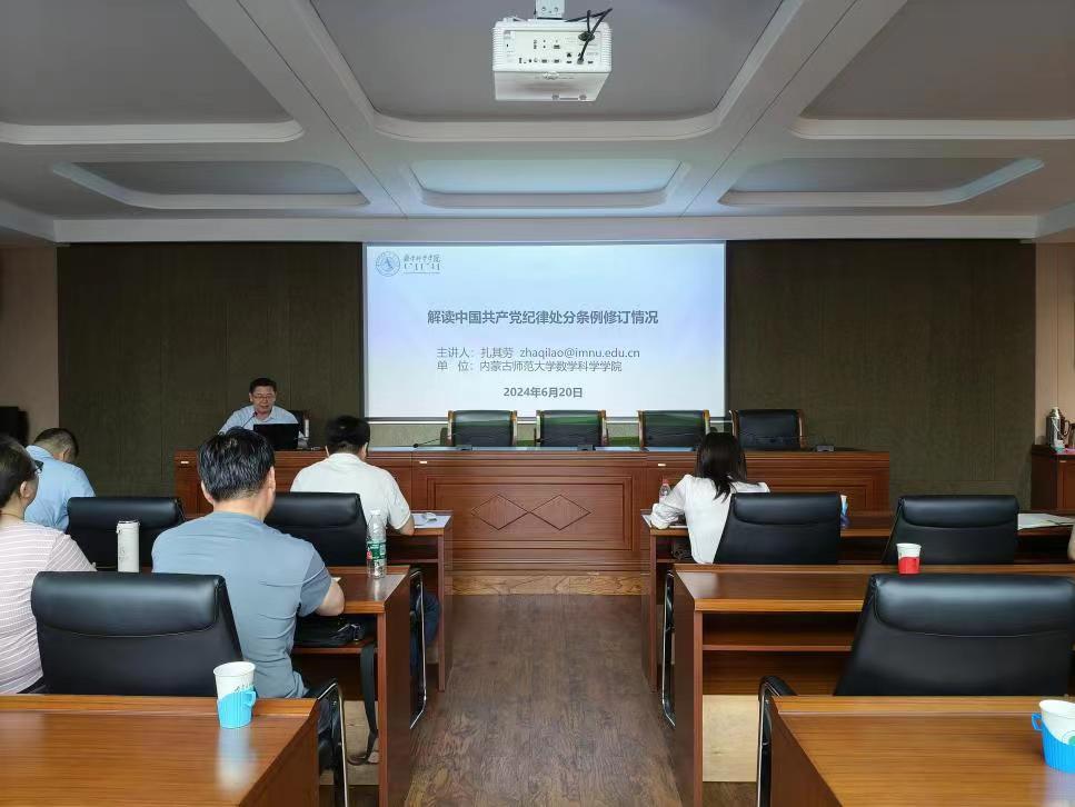 为深入学习领会习近平总书记关于全面加强党的纪律建设的重要论述,认真领悟贯彻新修订的《中国共产党纪律处分条例》,进一步推动党纪学习教育入脑入心、见行见效,6月20日下午,澳门pg官方电子平台开展《中国共产党纪律处分条例》(以下简称《条例》)修订情况解读专题学习会,学习会由学院院长扎其劳主讲,学院党委委员、各支部书记以及全体辅导员参加学习。