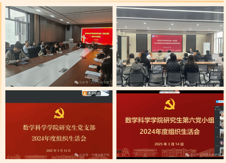 近日,澳门pg官方电子平台各党支部召开2024年度组织生活会,开展民主评议党员工作。各党支部书记主持会议,5个党支部全体党员参加会议。学院党员领导干部均以普通党员身份参加所在党支部会议。