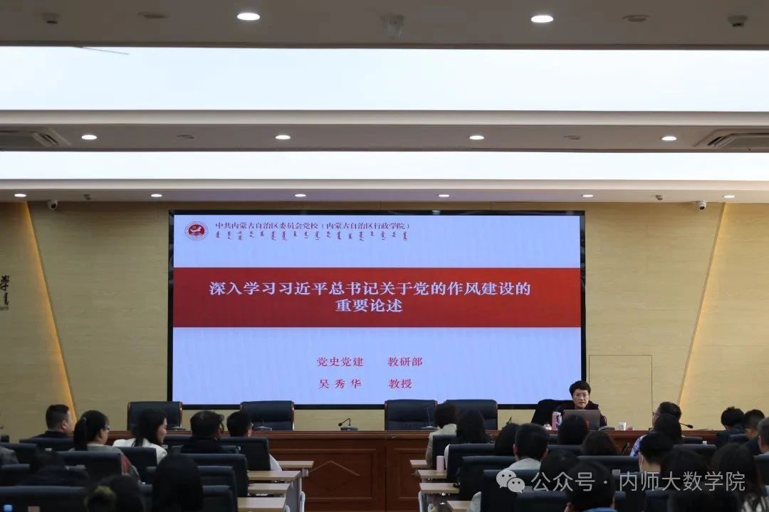 为深入贯彻落实党中央、自治区党委、学校党委深入贯彻中央八项规定精神学习教育精神和要求,高质量开展学习教育活动,4月10日,澳门pg官网联合化学与环境科学学院、物理与电子信息学院、生命科学与技术学院和未来科学与技术学院在赛罕校区行政楼三楼报告厅举办深入贯彻中央八项规定精神学习教育读书班专题讲座。讲座邀请内蒙古党校党史党建教研部吴秀华教授作题为“深入学习习近平总书记关于党的作风建设的重要论述”专题讲座。