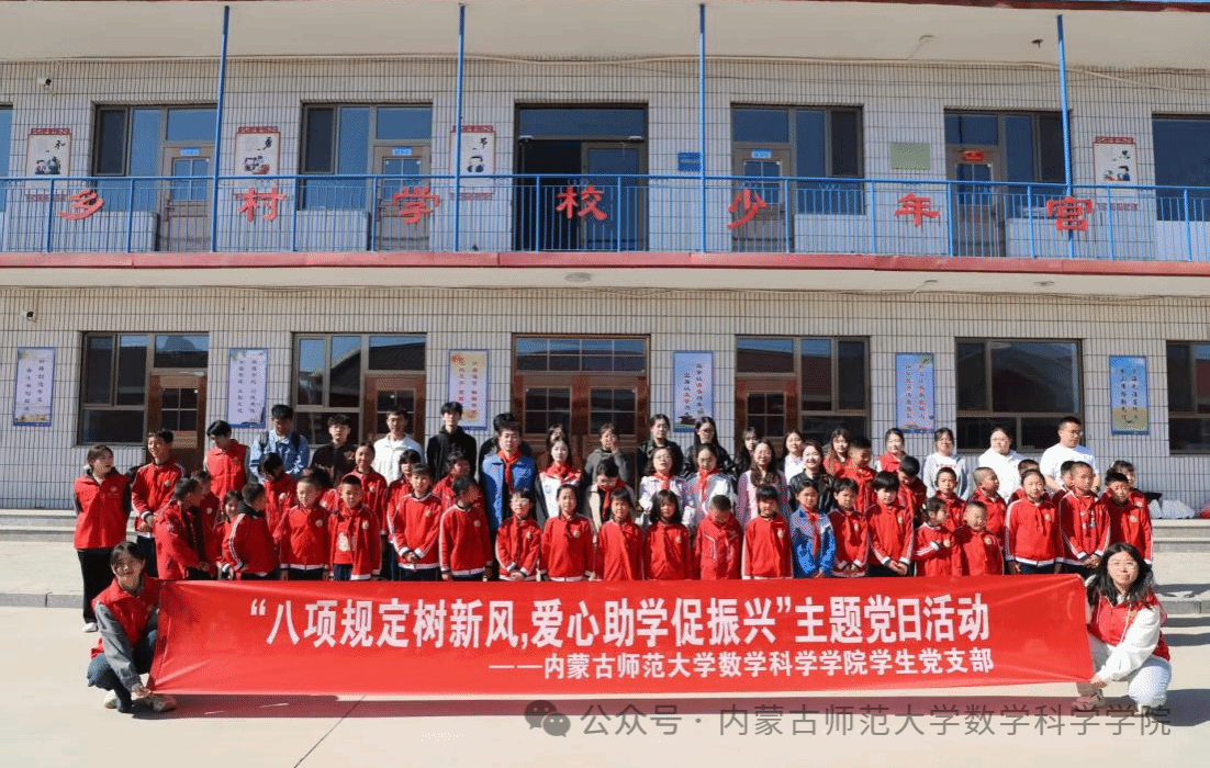 为锲而不舍落实中央八项规定精神,锤炼忠诚奉献的蒙古马精神,4月27日,研究生党团员代表前往和林格尔县舍必崖乡,开展"八项规定树新风,爱心助学促振兴"主题党日活动。