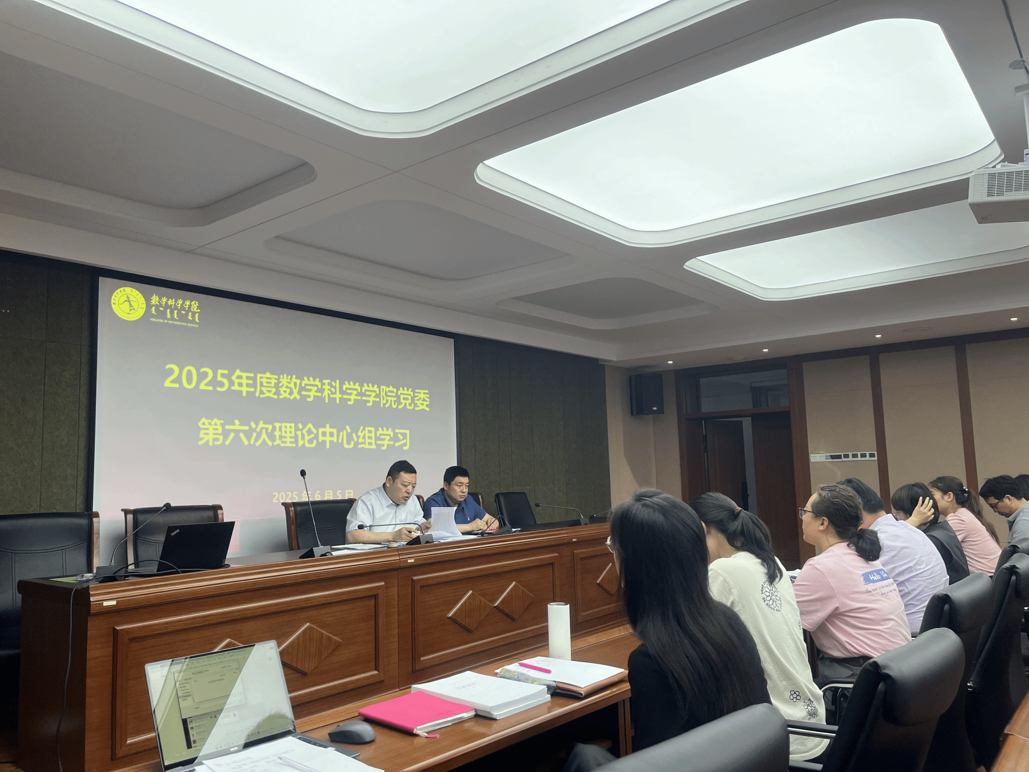 6月5日下午,澳门pg官方电子平台党委理论学习中心组在赛罕校区文史楼一号会议室召开2025年度第六次集体学习会,学院党委书记张伟主持会议,学院领导、党委委员和各支部书记参会。