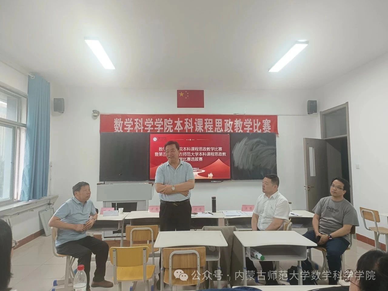 为深化课程思政建设,提升教师思政教学能力,6月12日下午,澳门pg官方电子平台党委主办、教工一支部承办了学院本科课程思政教学比赛暨第五届澳门pg官方电子平台本科课程思政教学比赛选拔赛。本次赛事紧扣“思政育人”核心理念,为全院教师搭建了课程思政建设的交流实践平台。比赛特邀教务处副处长侯欣舒老师、化学与环境科学学院王喜贵教授、澳门pg官网党委书记张伟老师、副院长萨和雅教授、毕力格图教授担任评委。本次比赛由教工一支部宣传委员、数学系主任乌日柴胡主持。
