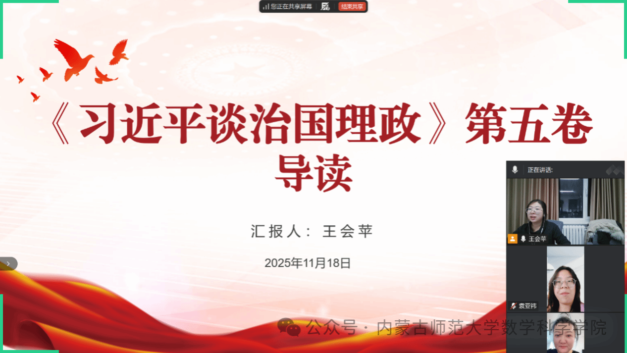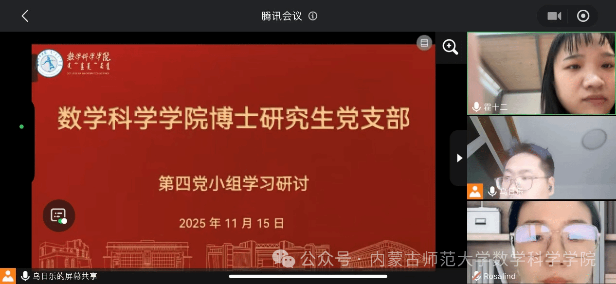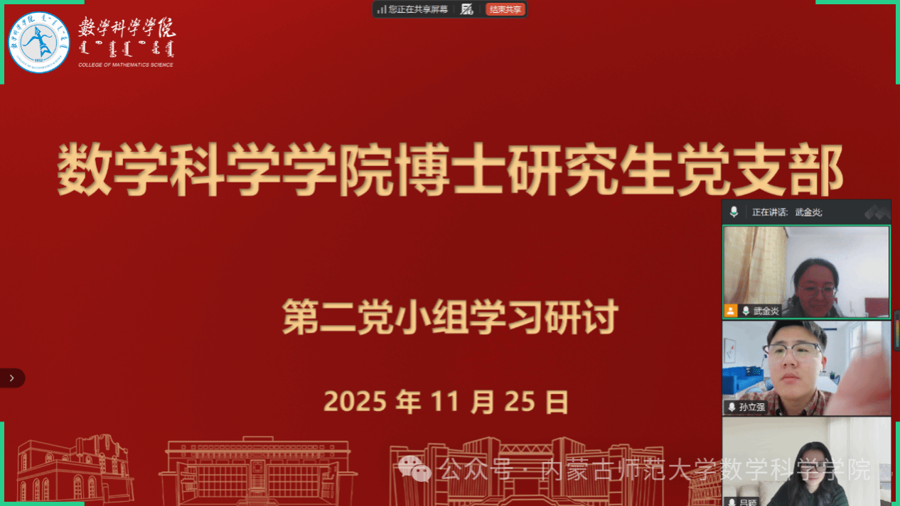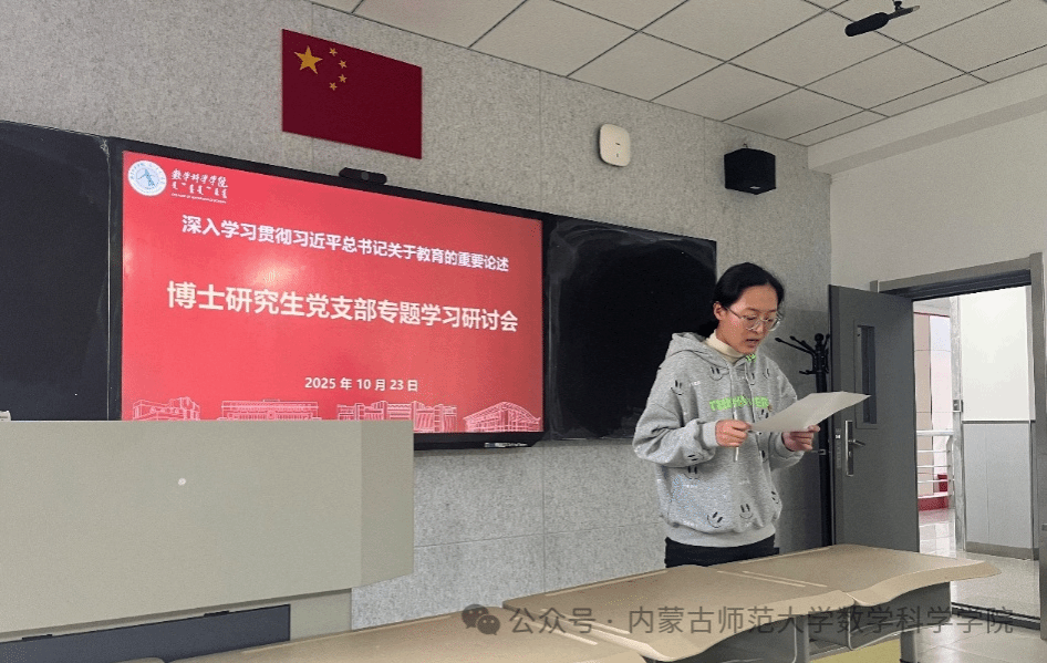 支部以“教育强国建设中的数学学科使命”为主题,召开学习贯彻习近平总书记关于教育的重要论述专题研讨会。会上,支部书记阿茹罕带领全体党员梳理学习习近平总书记关于一体推进教育科技人才发展的重要论述,重点围绕“博士生党员在拔尖创新人才培养中的先锋作用”这一核心议题展开交流。