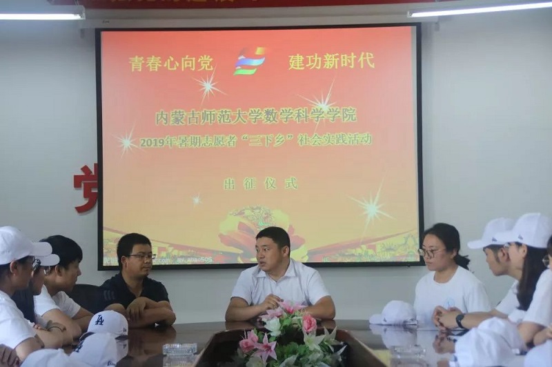 2019年7月13日,澳门pg官方电子平台于学院楼会议室举办“三下乡”实践活动出征仪式。此次仪式由团总支书记皮建东老师主持,党总支副书记副院长季建光老师,学生思想政治辅导员李帅老师及14位志愿者参与仪式。