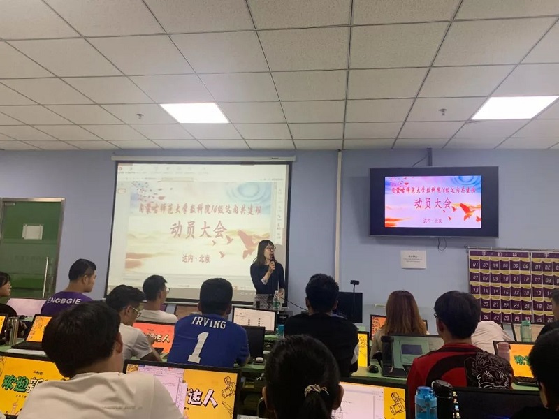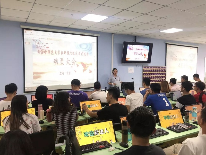 2019年9月4日下午,澳门pg官方电子平台院长刘官厅教授、副院长包霞副教授、王桂霞教授因心系16级信息与计算科学大数据班学生,不辞辛劳到北京看望在北京学习的同学们,并在达内领导及驻校班主任王建新老师的陪同下出席澳门pg官方电子平台数科院16级信息与计算科学大数据班动员大会。