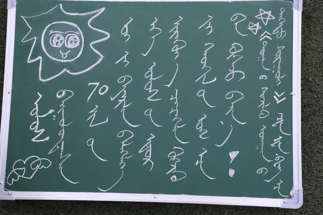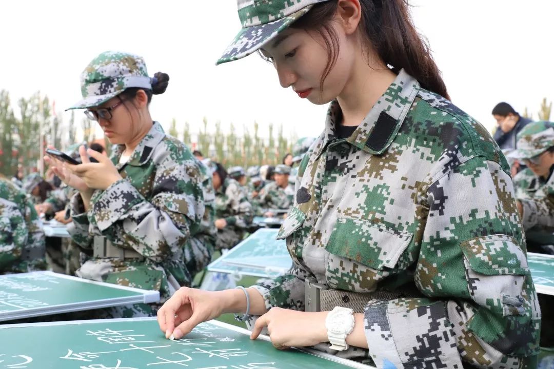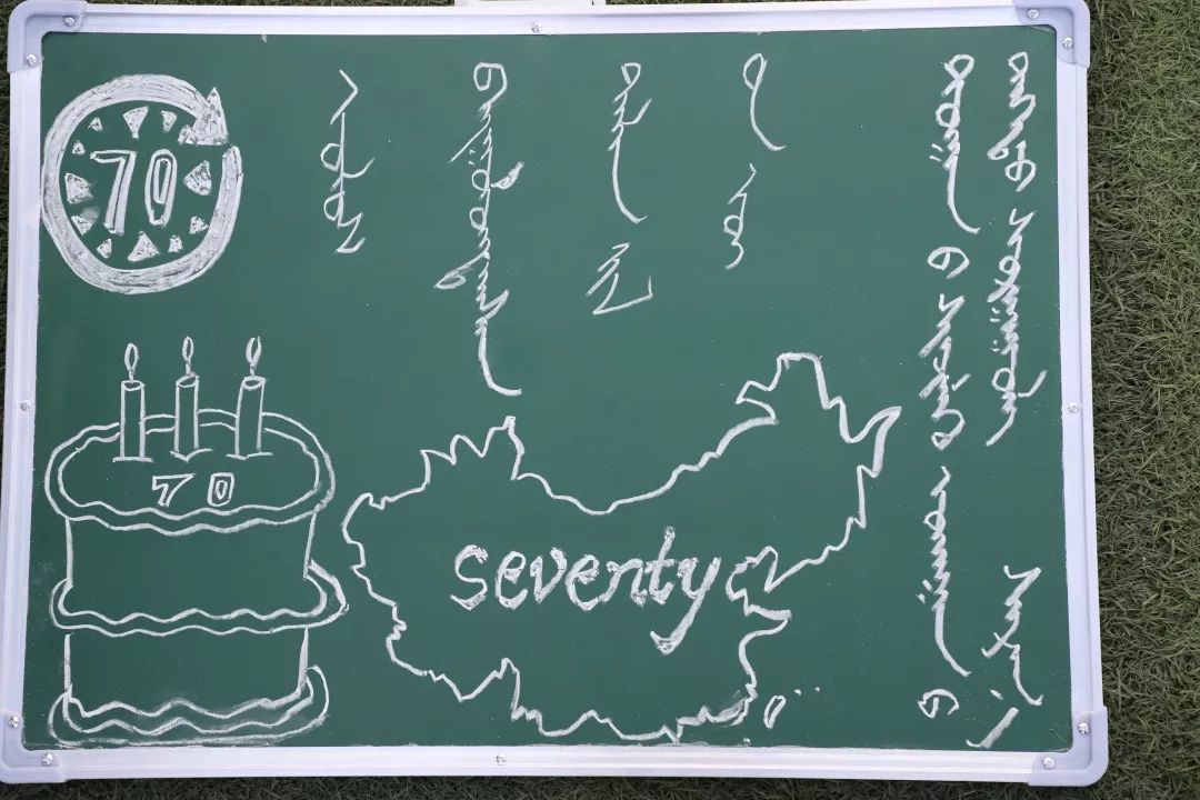 同学们通过书写粉笔字表达自己对建国70周年的庆祝。