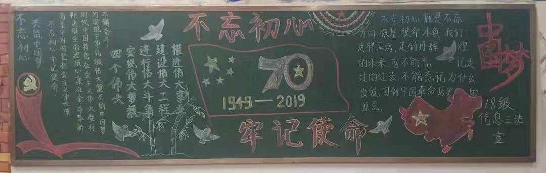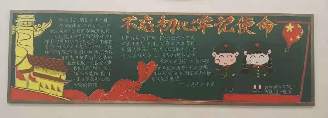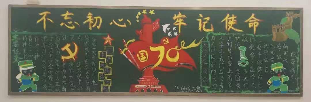 为扎实推进“不忘初心、牢记使命”主题教育,让广大学生坚定理想信念、进一步激发大家的爱国热情,激励同学们勇于作为、勇于担当,2019年11月澳门pg官方电子平台开展板报评比大赛,学院18、19级各团支部积极参与,板报设计主题鲜明、内容丰富。