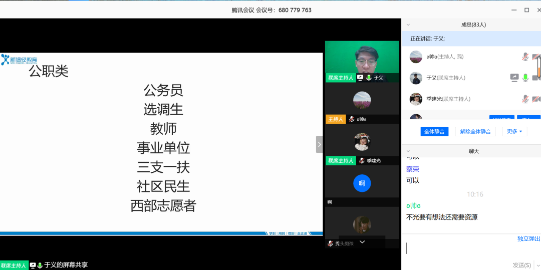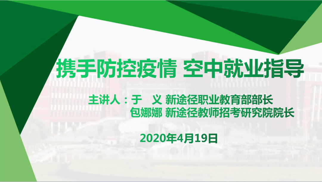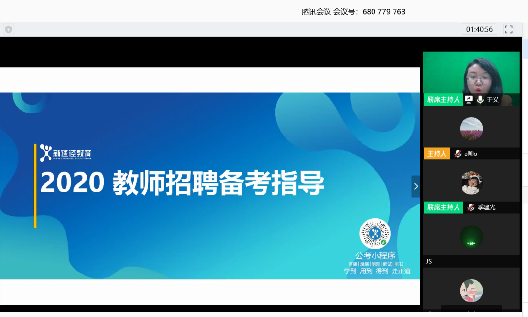 为帮助澳门pg官网2020届毕业生解决在择业、就业过程中遇到的问题和困惑,澳门pg官方电子平台特别邀请到新途径职业教育部部长于义老师、新途径教师招考研究院院长包娜娜老师于2020年4月19日为毕业生们进行线上就业指导讲座。学院党委副书记、副院长季建光老师,学就办负责人李帅老师、辅导员张惠清老师及2020届毕业生参加此次会议,会议由李帅老师主持。