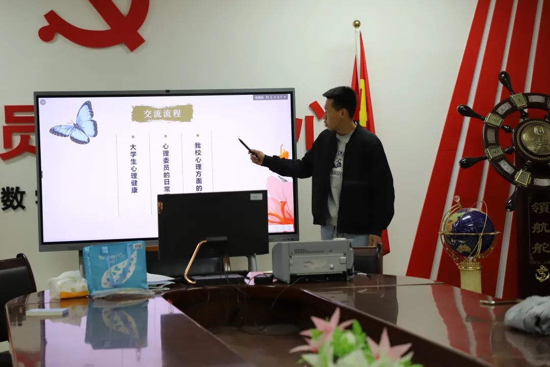 生活权益部负责人李晶晶同学就设立心理委员的必要性及生活中我们的重点排查对象两方面进行了详细的讲解。