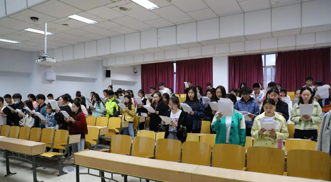 同学们全体起立,齐声朗读“习近平总书记在参加内蒙古代表团审议时强调的铸牢中华民族共同体意识”、“在党史学习教育动员大会上的讲话”,通过朗读习近平总书记重要讲话的形式,同学们对习近平总书记重要讲话精神有了更加深刻的理解,从文字中深刻体会到:只有民族团结、凝心聚力,才能使国家立于世界,谋求进步与发展。