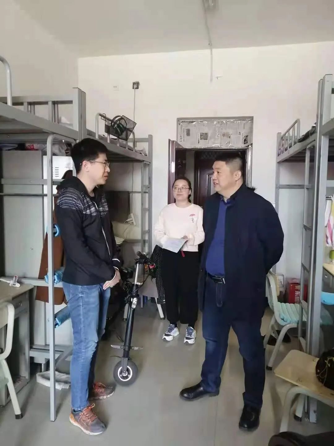 为了加强学生宿舍内务、卫生管理,推进学生宿舍文明建设,2021年4月28日上午澳门pg官网党总支副书记、副院长季建光老师,辅导员刘沙沙老师来到研究生公寓检查学生宿舍内务情况。