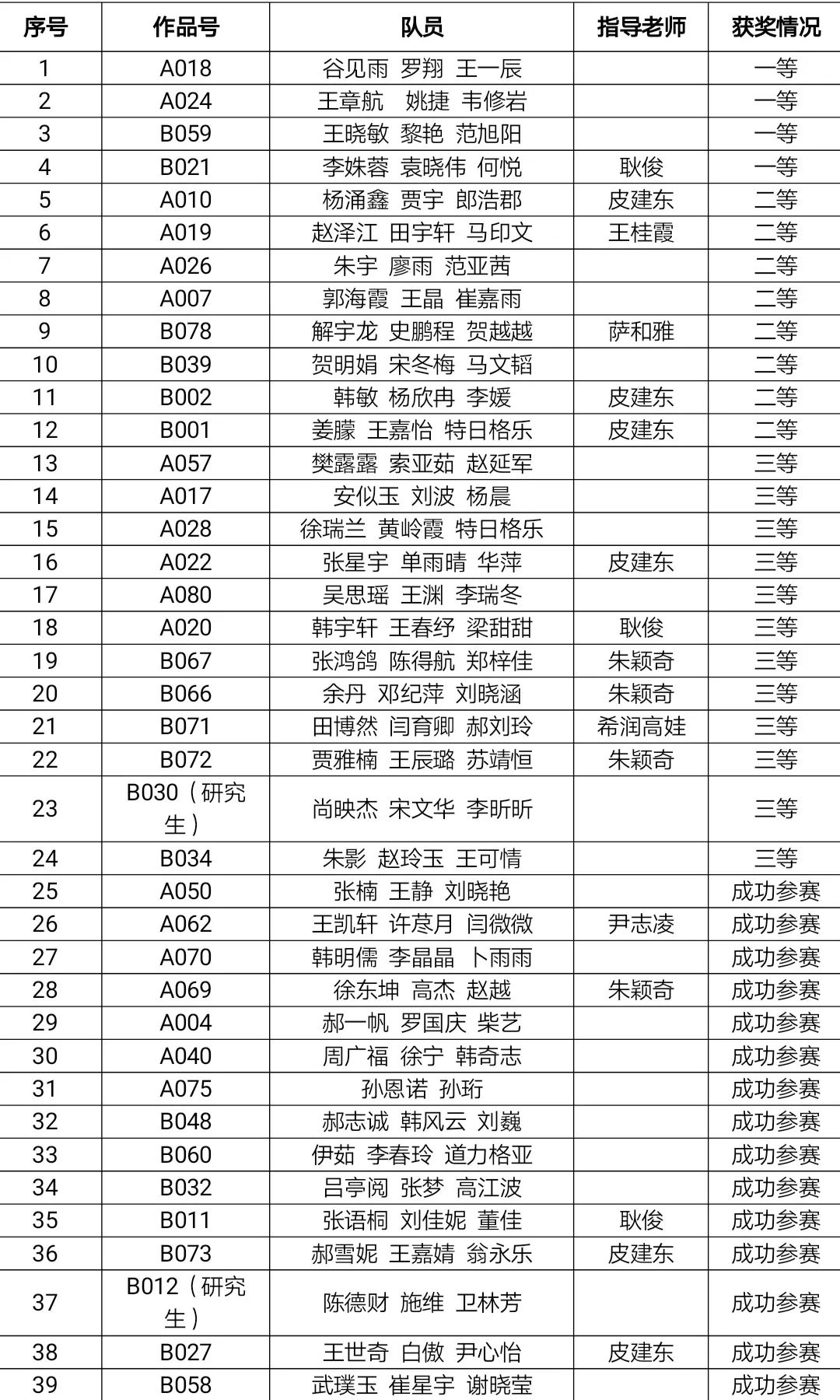 澳门pg官方电子平台第四届数学建模竞赛于2021年5月28日至5月31日举行,共有83支队伍报名参加,赛后共有47支队伍提交了论文。经过评委组的认真评阅,评出一等奖4组,二等奖8组,三等奖12组,成功参赛奖15组。具体名单如下: