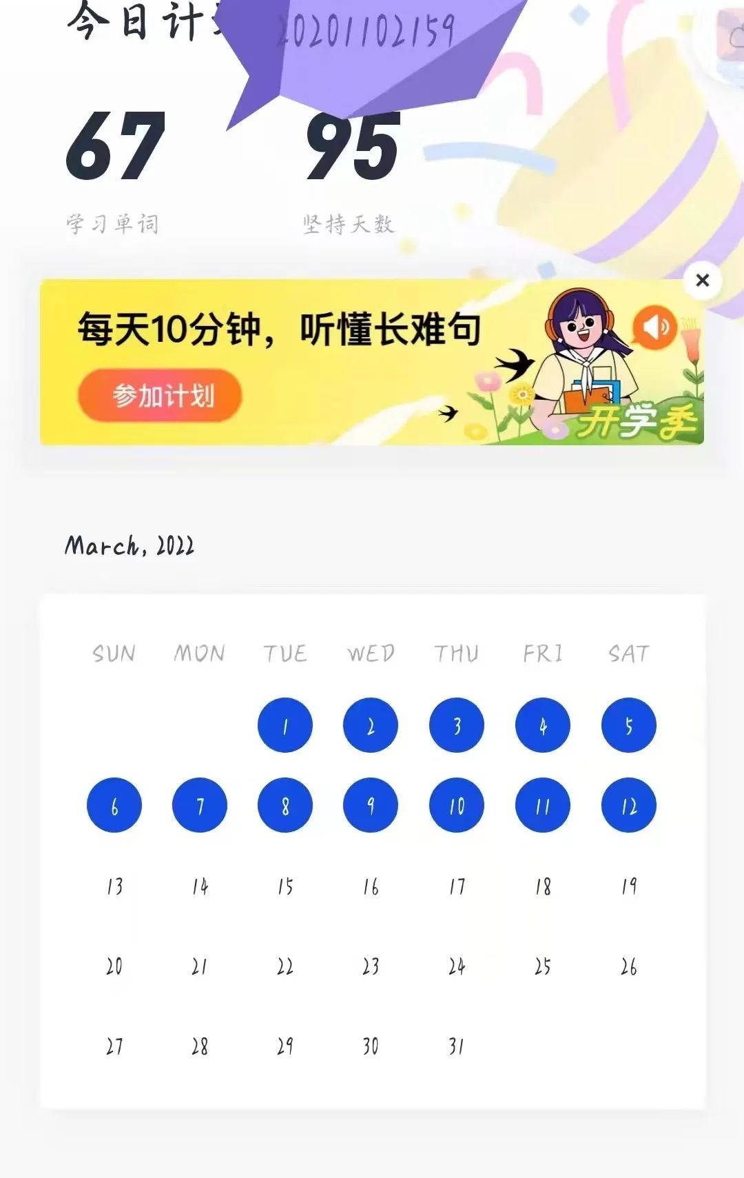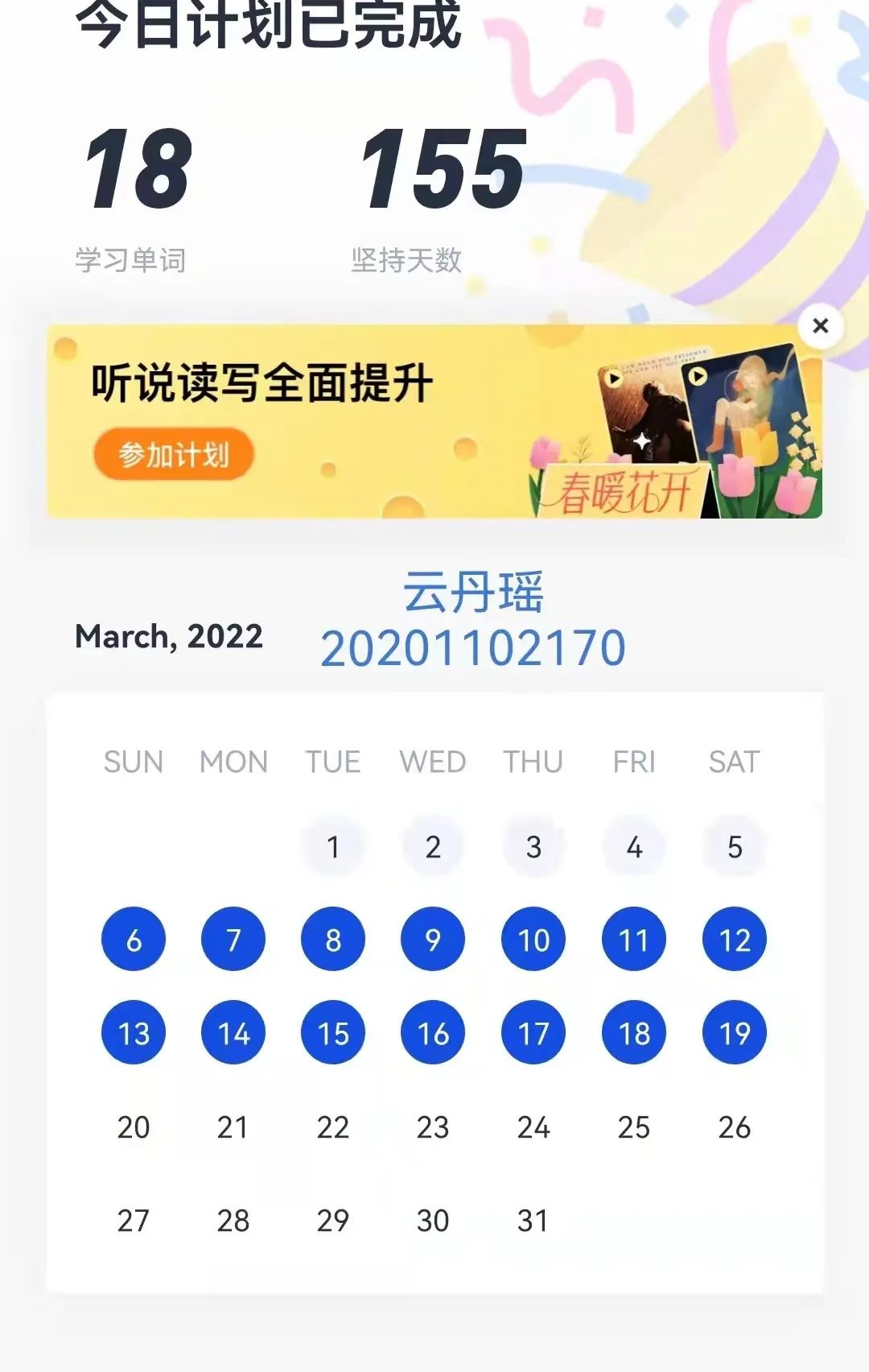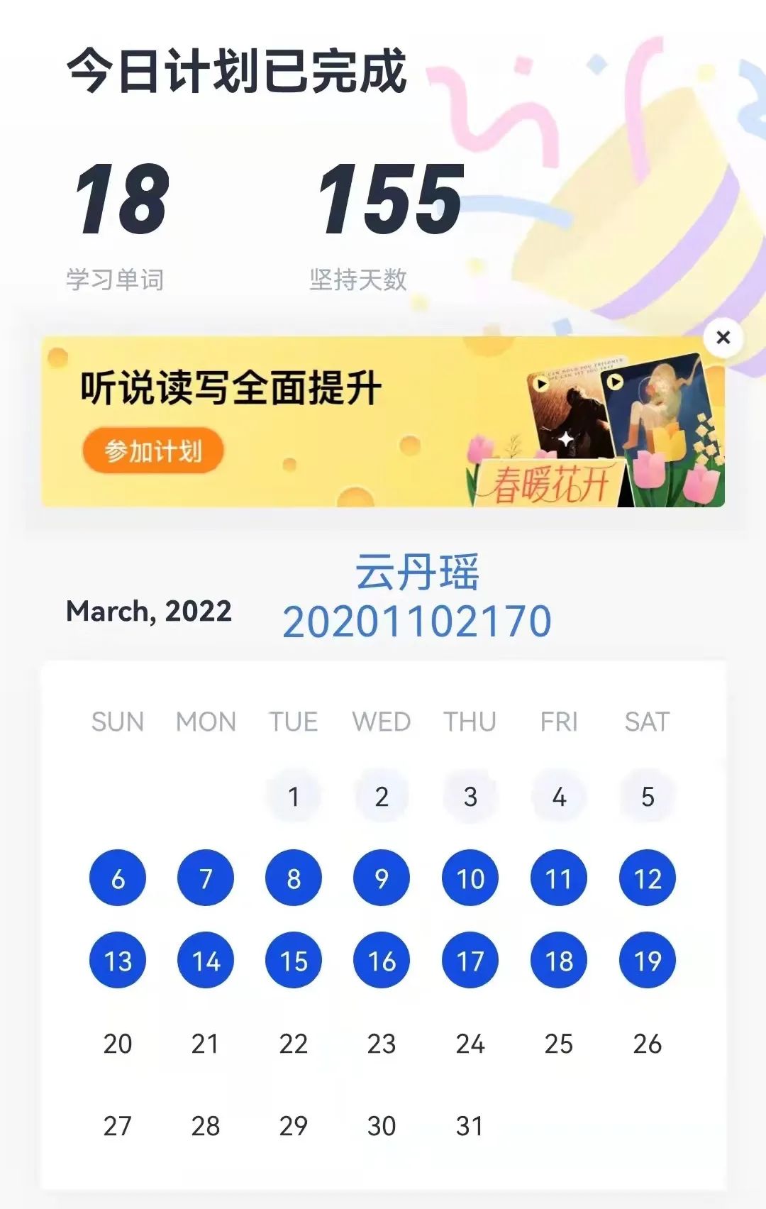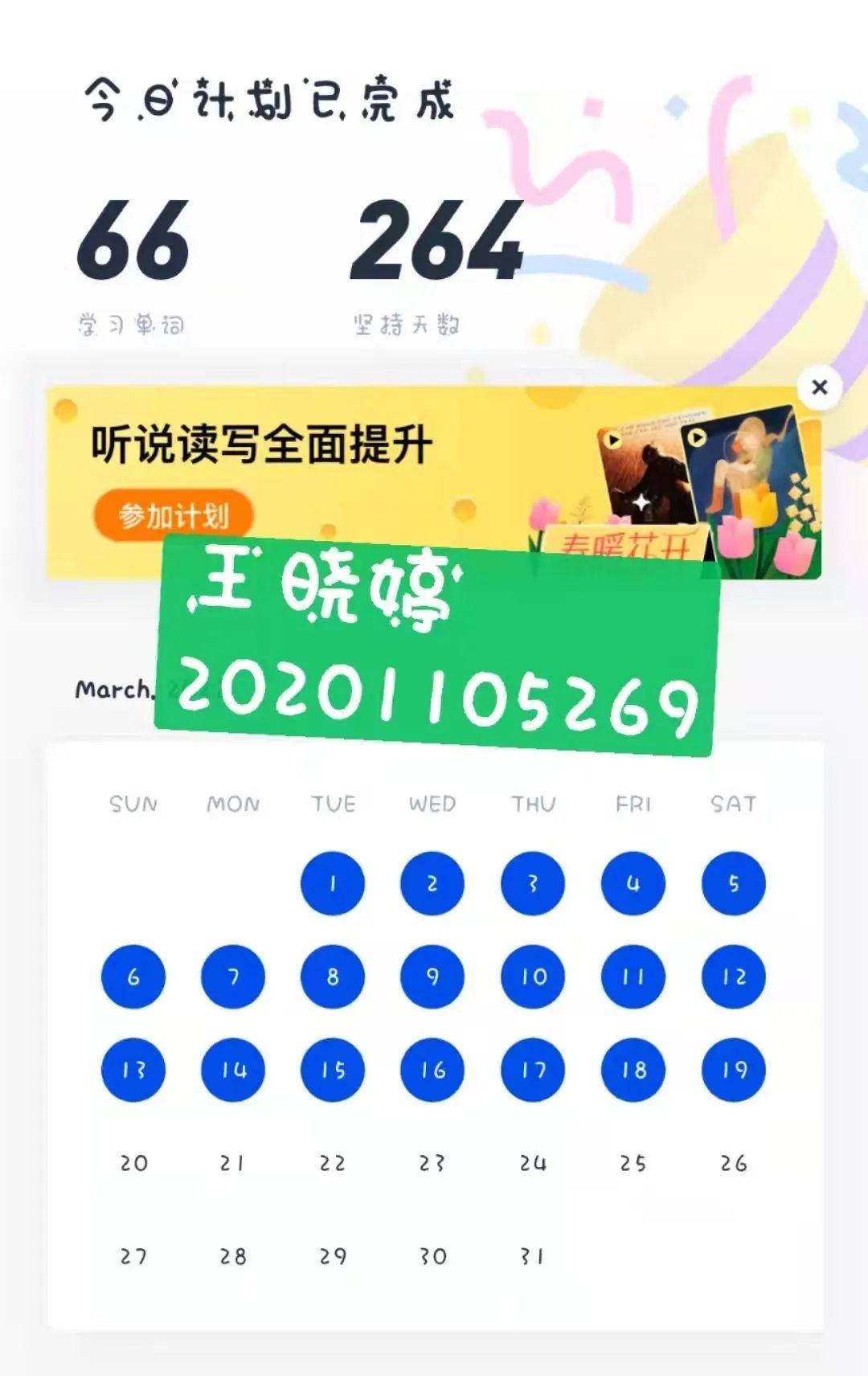 为了丰富学生的居家学习生活,提高学生的学习自觉性,澳门pg官方电子平台开展了“学习解疫,提升有我”的英语单词打卡活动,150名学生积极响应活动,进行打卡学习。