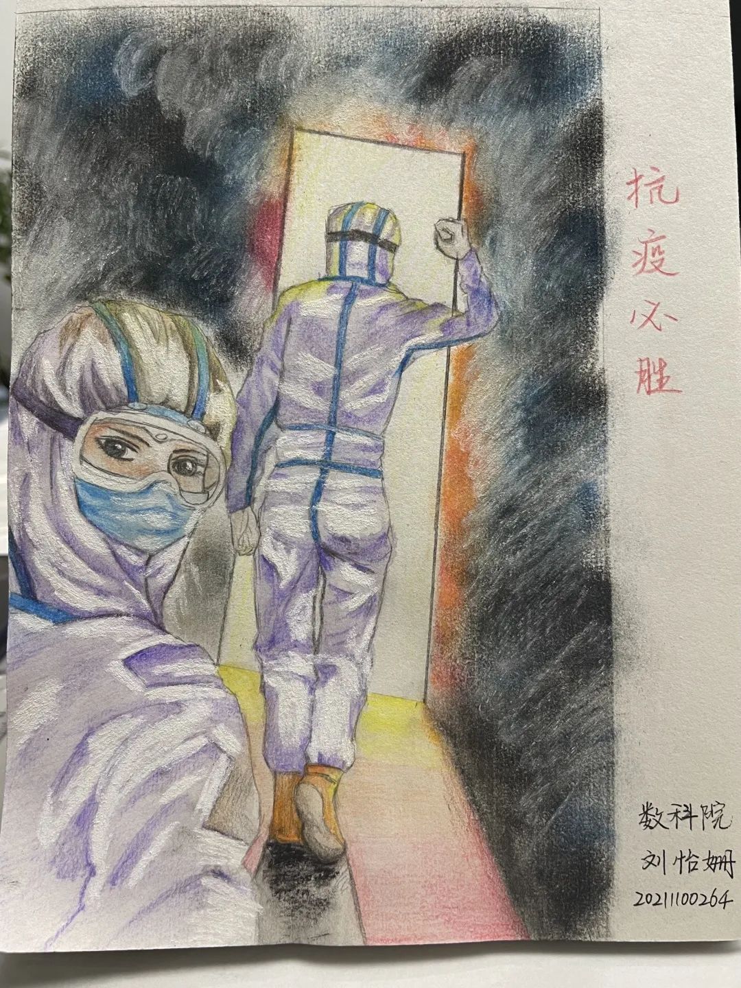 新一年的春天已经来临,疫情的阴霾却仍未散去。为了进一步宣传疫情防控知识,加强数科学子们的防控意识,澳门pg官方电子平台举办以“疫”不容辞,防“疫”有我为主题的作品征集活动。通过“写”抗击疫情主题网文,“画”定格感动瞬间,“绘”直击心灵的画作等形式,描绘发生在身边的抗疫故事,讴歌“最美逆行者”,传递爱国情怀,培育和践行社会主义核心价值观。数科学子积极参与活动,创作出了许多优秀的抗疫作品。