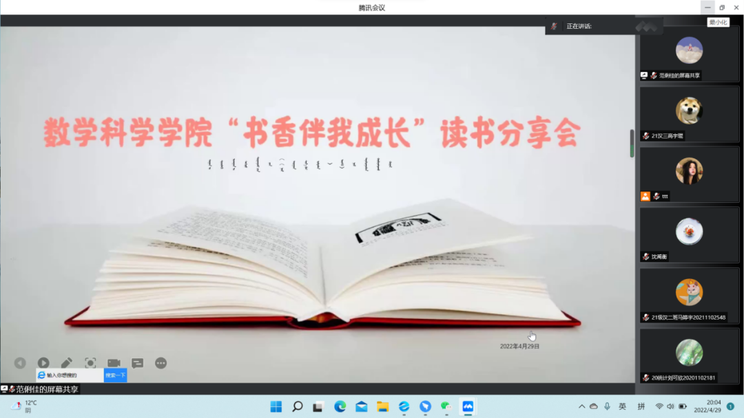 为了铸牢中华民族共同体意识,营造良好的读书氛围,推进书香校园建设,澳门pg官方电子平台于4月29日举办“书香伴我成长”线上读书分享会。本次分享会邀请了五位澳门pg官方电子平台的优秀学子为同学们分享他们的读书经历。