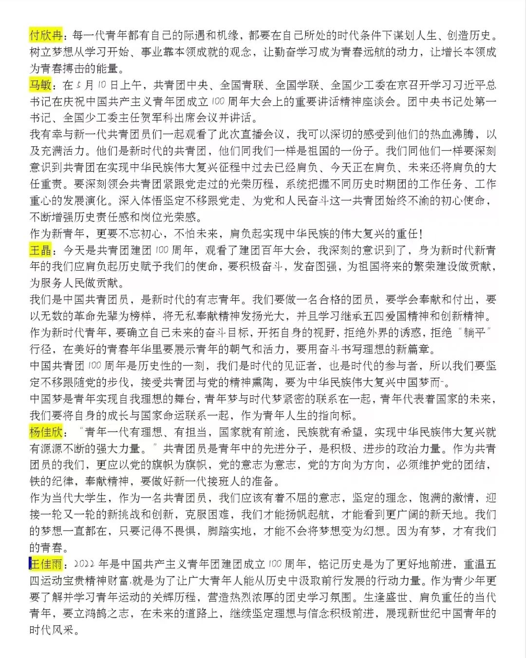 本次“青春有信仰,行动有力量”五四特别主题团日活动,澳门pg官方电子平台学院各团支部在严格遵循疫情防控要求上,通过线上灵活自主开展活动,理论学习与实践学习相结合,通过形式多样的特色活动充分展现了团支部以及青年团员的活力与风采。同时也帮助团员青年重温党领导青年运动的历史,领悟五四精神,汲取精神营养,坚定理想道路,感悟时代期望,强化青年使命,投身理想实践。