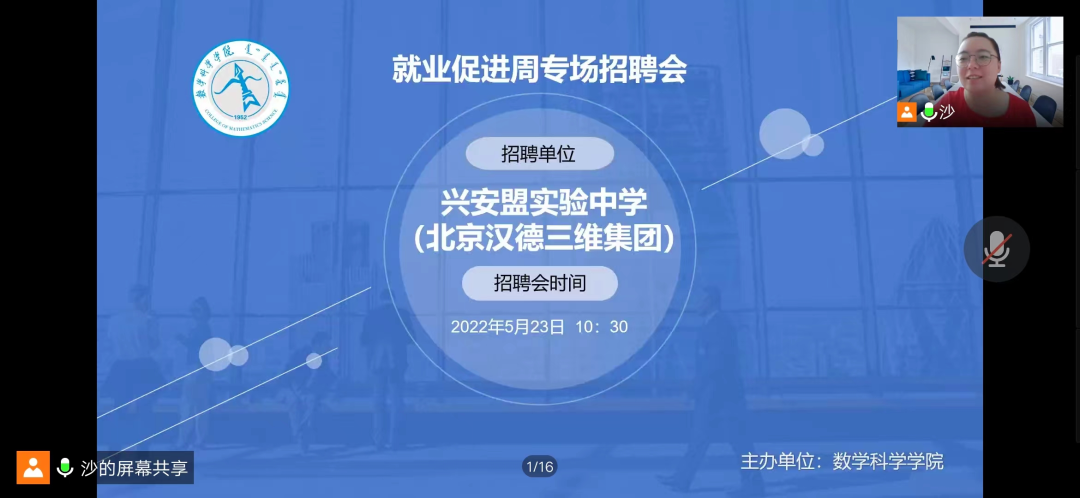 为更好的推进《澳门pg官方电子平台2022届毕业生就业促进周系列活动方案》的工作要求,全力促进毕业生尽早就业、顺利择业,5月23日上午10:30,学院举办了“就业促进周”网络专场招聘会,此次招聘专场是兴安盟实验中学,实验中学校长解杰、副校长李郭瑞、吴老师以及学院党委副书记、副院长季建光、学生工作与就业办公室副主任刘沙沙、辅导员萨如拉出席此次招聘会议,澳门pg官网2022届数学与应用数学专业的60多名毕业生参加本次招聘会。