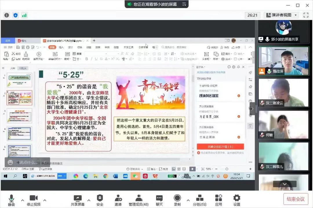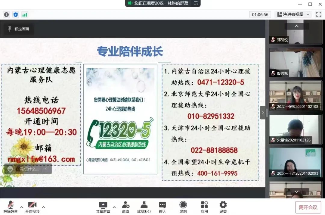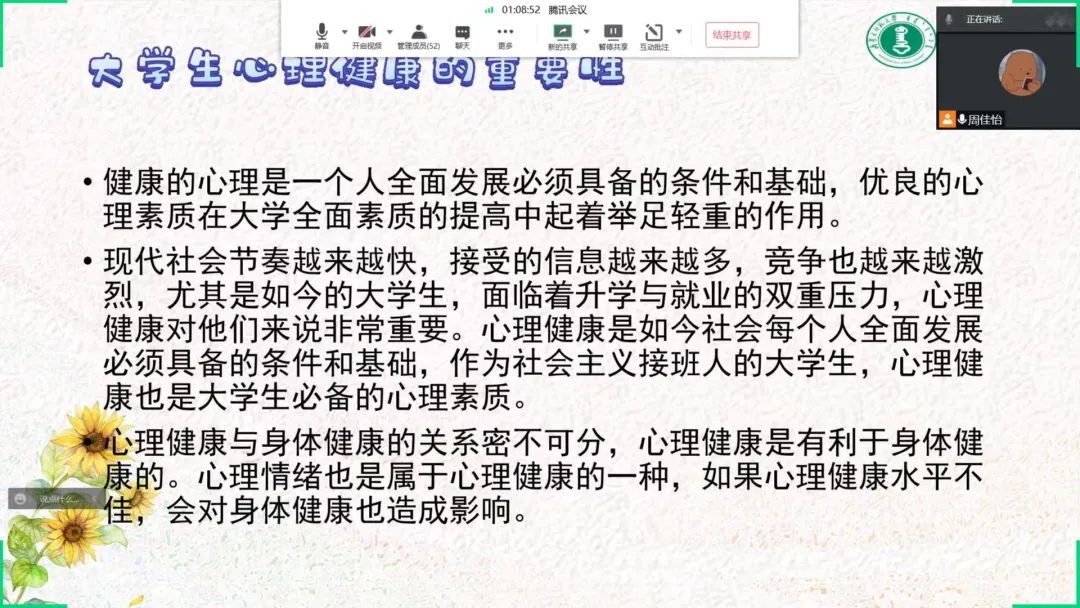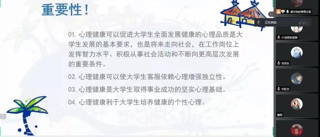 为深入推动大学生心理健康教育,在大学生群体中普及心理健康知识,引导大学生积极主动地关注自身心理健康,促进大学生健康全面发展,澳门pg官网于5月16日—5月24日召开“润心育人,助力成长”心理健康主题班会,向同学们介绍5.25大学生心理健康日的由来、大学生心理健康的重要性、学校心理健康教育的服务机构以及服务内容、介绍心理健康的重要性等,保障同学们能够度过一个愉快的大学生活。