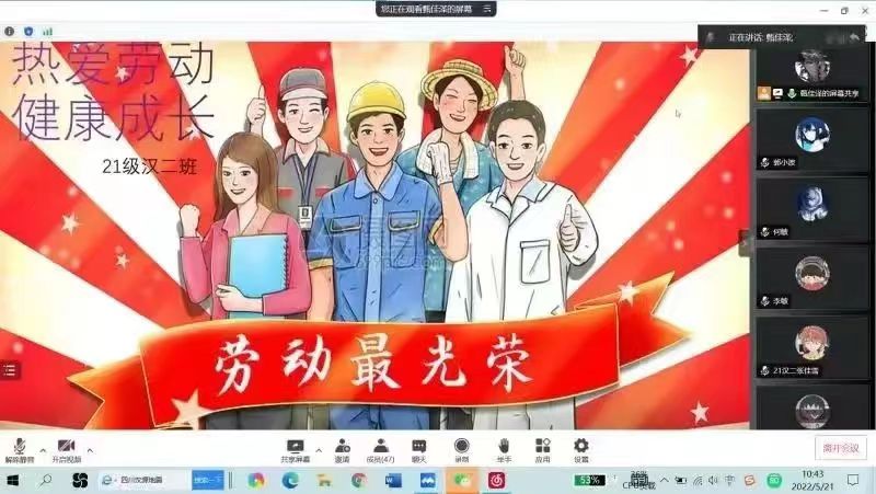 5月22日,澳门pg官网以班级为单位,深入学习习近平总书记关于劳动的重要论述、《中共中央 国务院关于全面加强新时代大中小学劳动教育的意见》、《内蒙古自治区教育厅关于在全区组织开展学生劳动教育宣传月活动的通知》(内教体艺函〔2022〕53号)、《澳门pg官方电子平台关于全面加强新时代劳动教育的实施意见》(内师党发〔2020〕20号)等文件内容,解读劳动的重要意义。