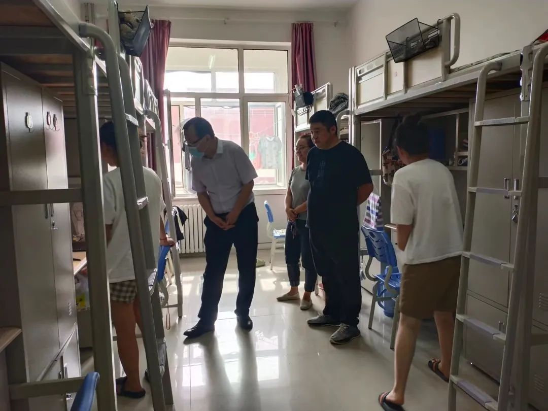 本学期学生返校以来,同学们有爱、有责、有序地开启了新学期的学习与生活。夏日炎炎,防暑更要防“疫”,为进一步了解返校学生思想、学习和生活状况,8月2日,澳门pg官网党委书记李联和和全体辅导员深入学生宿舍进行走访慰问,在与同学们的亲切交谈中,了解学生所需所想,鼓励学生潜心学习。同时,嘱咐同学们一定要做好防暑降温,保持宿舍清洁,注意用电安全,积极配合学校做好疫情防护工作。