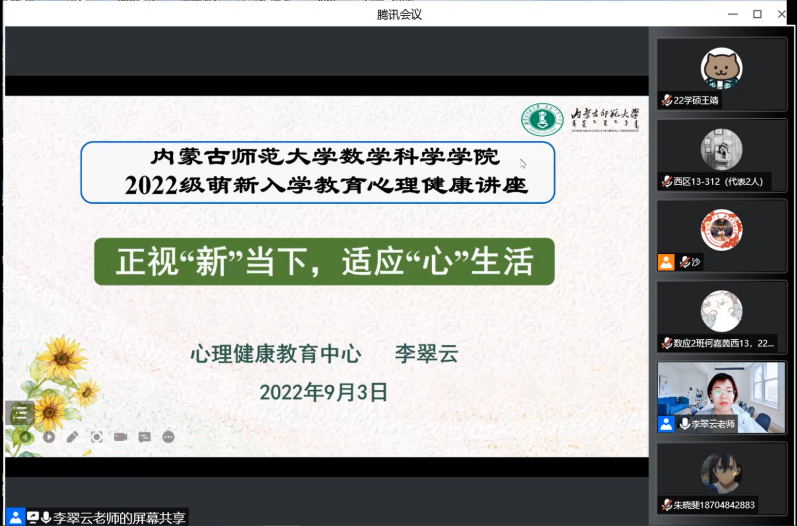 2022年9月3日下午19:00—20:30,澳门pg官网22级研究生新生参加了由李翠云老师主讲的心理健康教育讲座。