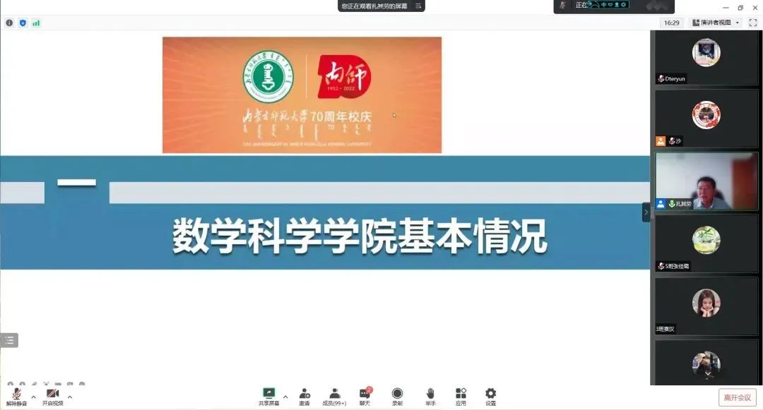 2022年9月3日上午10:30—12:00,学院院长扎其劳老师从澳门pg官方电子平台基本情况和数学学科发展概况两方面介绍了学院发展历程,向研究生新生开展入学教育讲座,并对研究生新生寄予厚望:我们每一个人都是逐梦人、追梦人和圆梦人;只要我们勠力同心,奋发有为,真抓实干,中华民族伟大复兴的中国梦就一定会实现!