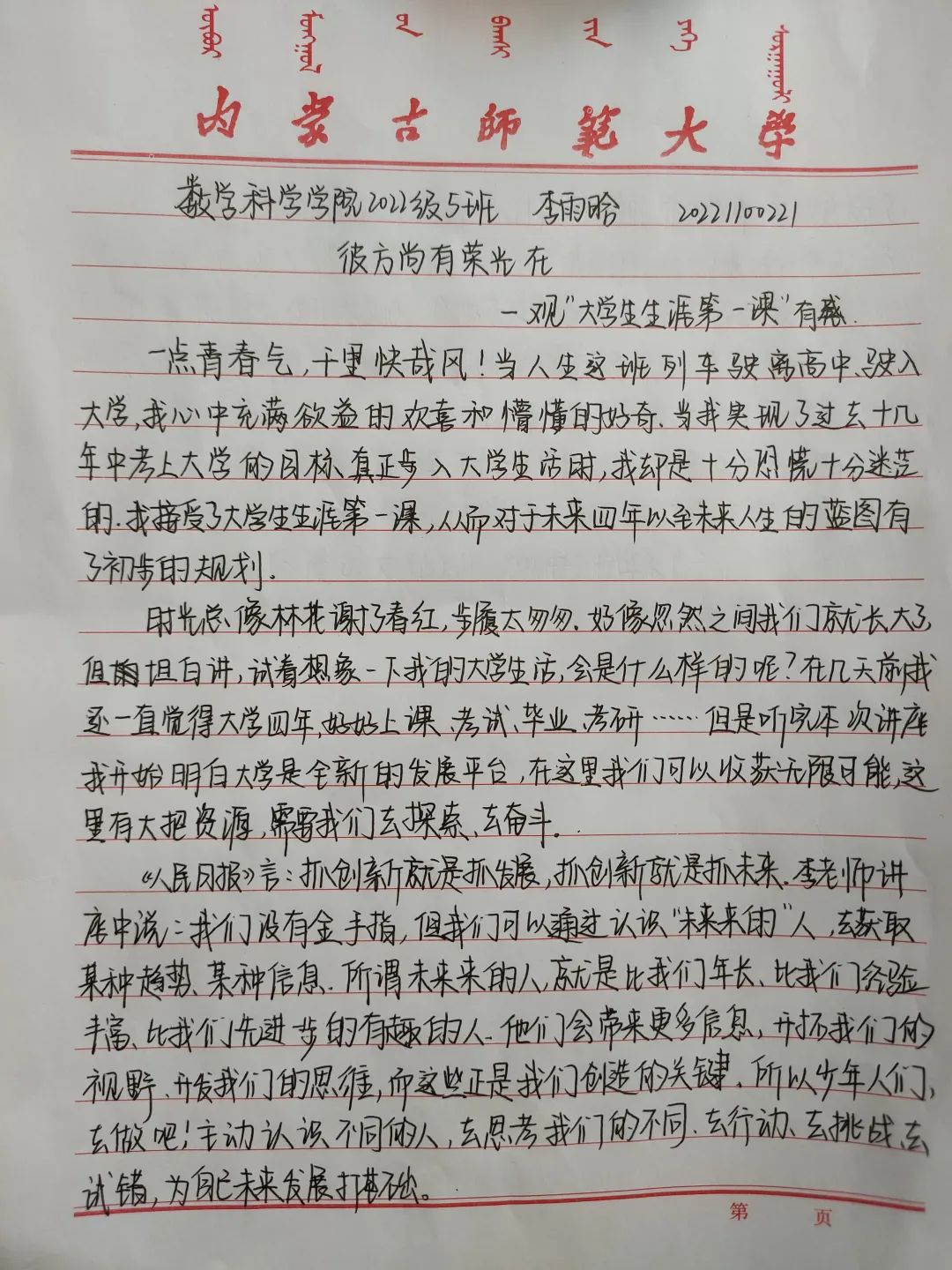 谈及“创造”时,李老师用自己的亲身经历教育我们不要害怕犯错,怕的是什么都不做。
