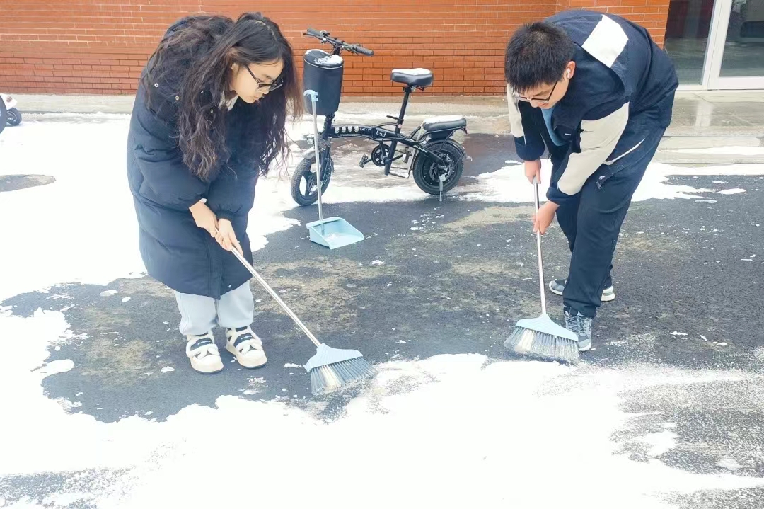在本次清雪除冰行动中,志愿者们热情高涨、干劲十足,奋力地挥舞着手中的除雪工具,很快厚厚的积雪就被清扫一空。