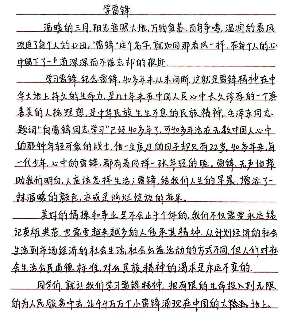 为进一步学习和弘扬雷锋精神,形成“人人学雷锋、时时有雷锋、处处见雷锋”的良好氛围,扎实有效推进学生思想道德教育,3月5日,澳门pg官方电子平台举办学雷锋纪念日主题征文活动。