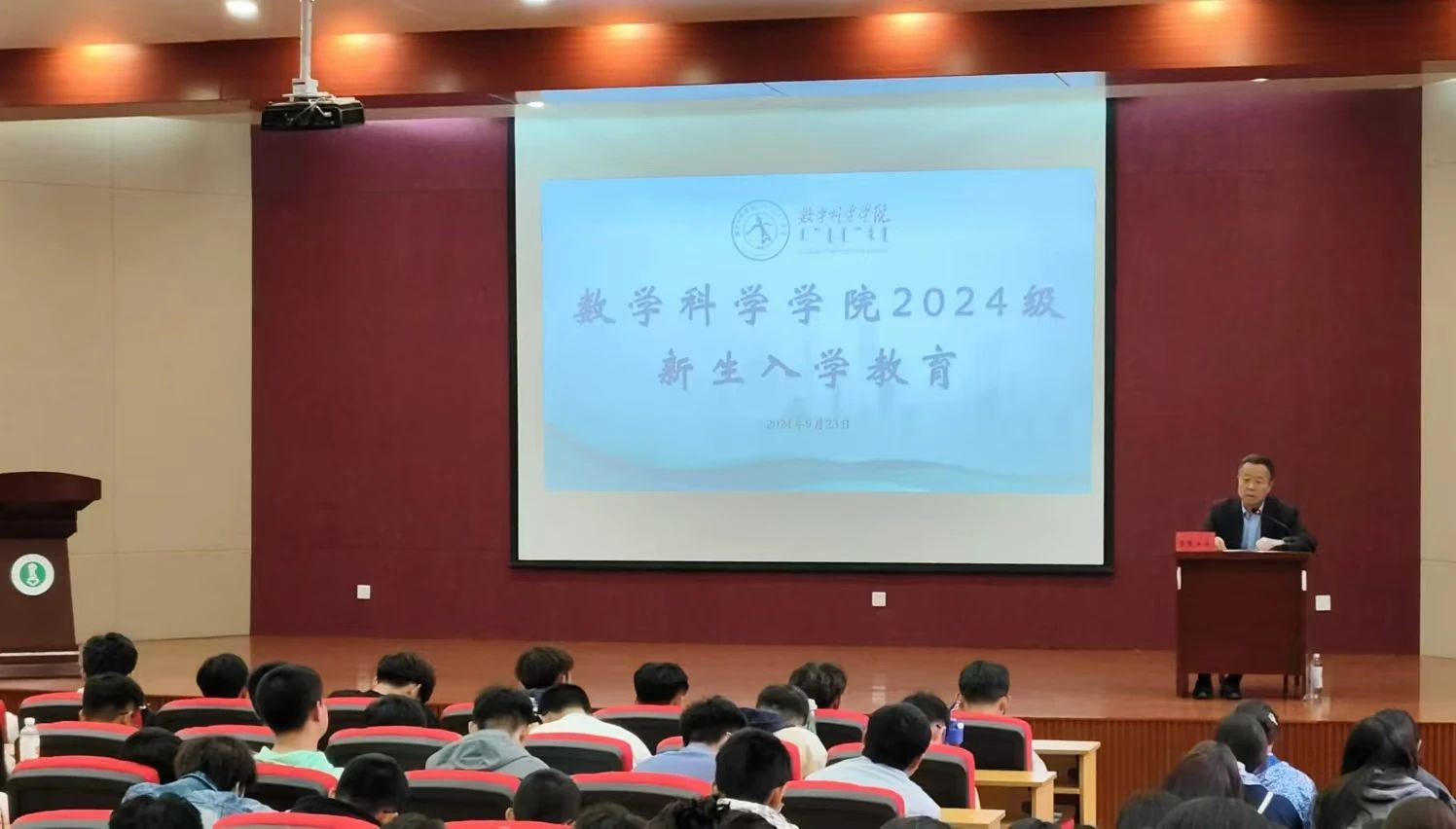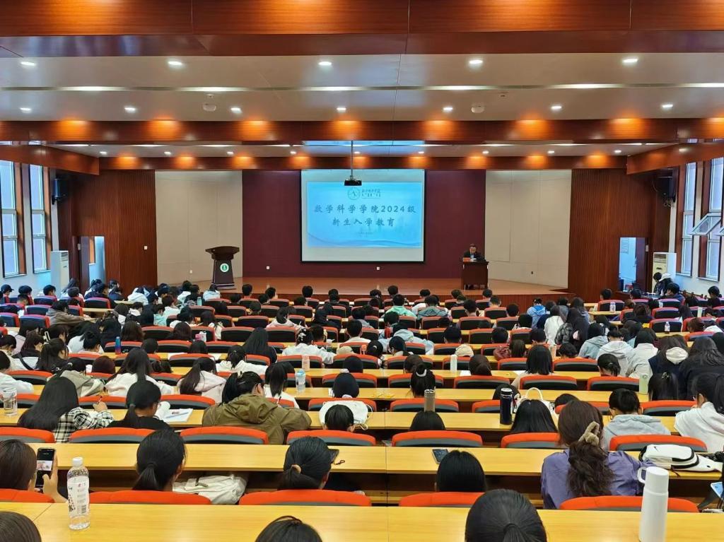 数学院教学指导委员会主任吴嘎日迪老师以“我的数学人生”为题开展专业思想教育讲座。吴嘎日迪老师结合自己的教学经验与成长经历,为同学们介绍了其与数学共成长的故事,引导新生了解专业特色 、增强专业认知、巩固专业思想。他嘱咐同学们一定要注重学习,做一个有学问,有人品,有过硬能力素质的人。