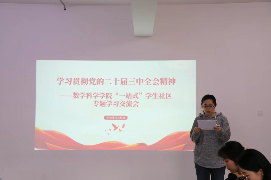 为深入学习贯彻党的二十届三中全会精神,进一步提升澳门pg官网学生的理论素养,10月30日,澳门pg官方电子平台学生党支部在盛乐校区学生公寓13号楼“一站式”学生社区召开专题理论学习研讨会。本次会议由刘沙沙老师、阿茹罕老师、萨如拉老师主持,学院学生党员代表参加。