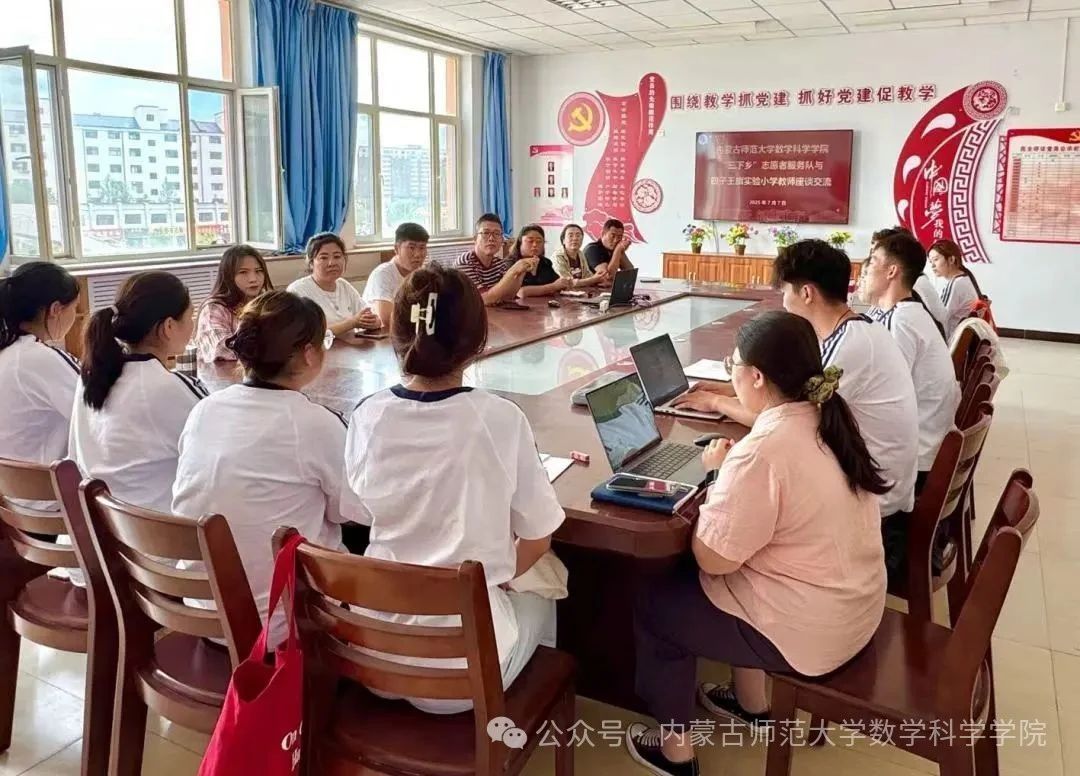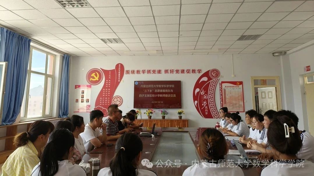 7月7日,澳门pg官方电子平台教育关爱服务团与四子王旗实验小学数学组教师开展学习交流活动,大学生志愿者与资深教师共聚一堂,围绕基础教育发展与数学学科创新教学主题展开研讨。志愿者们虚心聆听一线教师分享基层教学实践经验,认真学习课堂组织与学生管理智慧,从课堂互动细节到课后跟踪方法,紧扣学生实际,让初执教鞭的小老师们茅塞顿开。