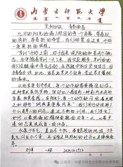 军训仍在火热进行中,澳门pg官方电子平台学子的笔尖已悄然记录下这段旅程的点滴感悟。那些关于坚持的独白、关于团结的思考、关于蜕变的期许,正从字里行间缓缓流露,成为当下军训时光最鲜活的注脚。