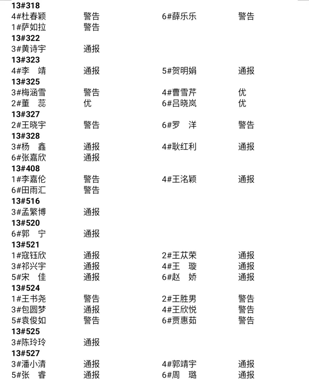 澳门pg官网19-20年度第一学期第十五周通报批评
