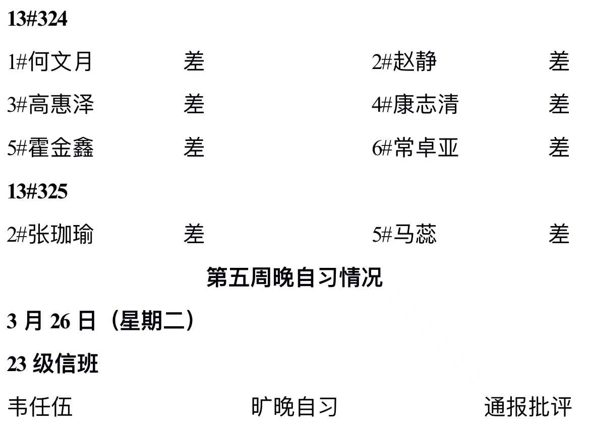澳门pg官方电子平台2023——2024年度第二学期第五周通报情况