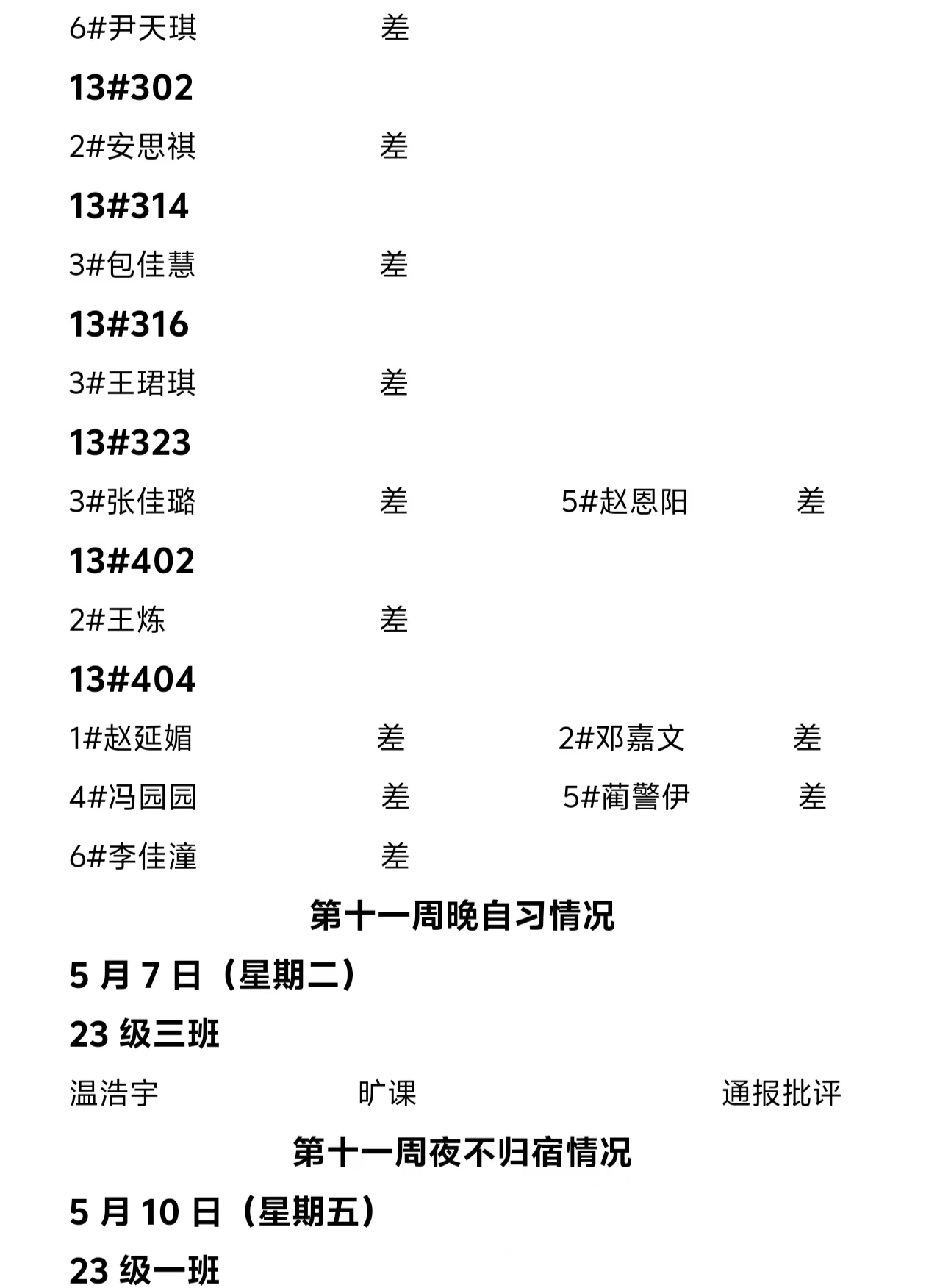 澳门pg官方电子平台2023——2024年度第二学期第十一周通报情况